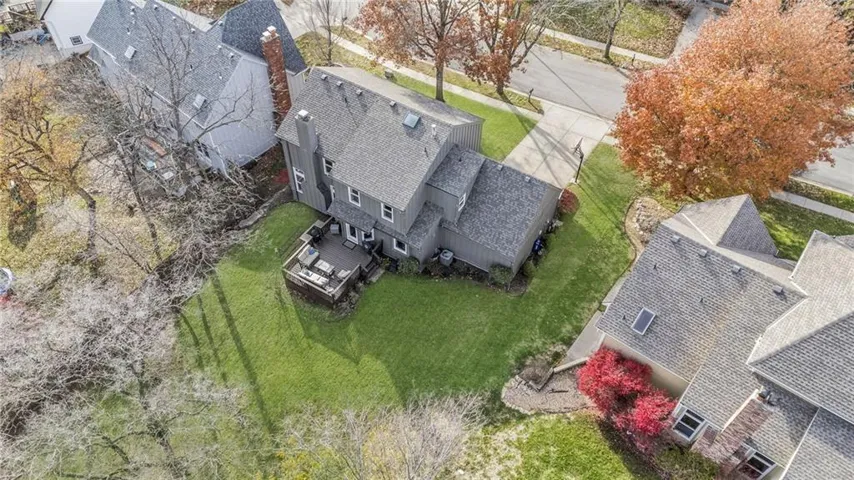 "LongDescription" => "Rear view of property with a wooden deck, roof with shingles, and a yard"