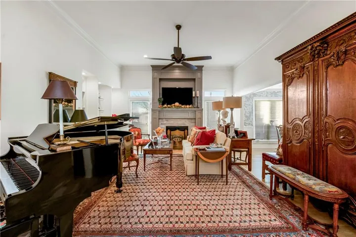The layout includes a cozy breakfast room and a den, providing versatile spaces for dining and relaxation. The formal living room is elegantly designed, while the large living room boasts high ceilings, creating an airy and open atmosphere ideal for entertaining or unwinding.\r\n