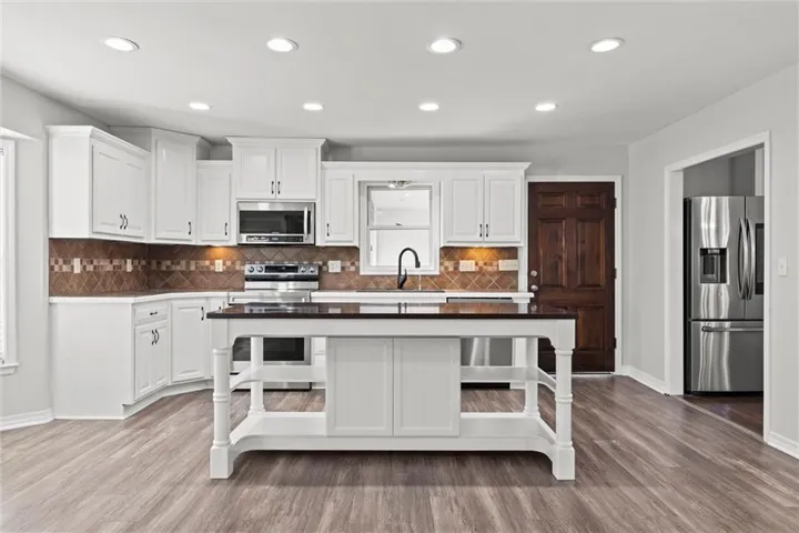 +"PublicRemarks": "Wonderful Raymore 1.5 Story featuring approximately 3800 square feet of quality! This 5+ bedroom layout has been updated inside and out and sits beautifully on a 2.83 acre park like setting! Recent updates include: Roof, septic, electrical panels, flooring, doors/windows, (2) HVAC, water heater, driveway, composite deck,shed, interior paint and more! All big ticket items are good to go! Open and impressive..this layout features Formal Dining with preparation/Butler's area, spacious Kitchen with painted cabinets and island, Great Room with fireplace and main floor Primary bedroom. Large outbuilding with upgraded power in addition to 2 car tandem depth side entry garage with attached Sun Room/Hobby Room. Finished lower level offers unlimited possibilities and plenty of storage. Great location..no gravel roads..ideal access and close to shopping and restaurants...Ray-Pec schools...a must see Raymore acreage opportunity!"