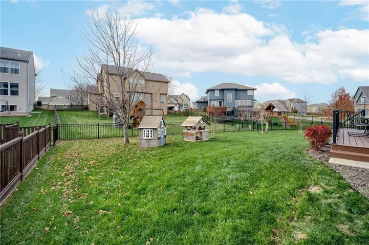 +"PublicRemarks": "Welcome to your future home! Sought after neighborhood in Lenexa with Award Winning Schools! THIS 2-story home has had ALL BIG TICKET items DONE! NEW ROOF, NEW HVAC System, NEW rod iron Fencing, Exterior Painted 2 years ago, Carpets Professionally Cleaned in the last 2 weeks. It’s a PERFECT blend of comfort, functionality, and luxury. The main level is the HEART of this HOME, with hardwoods throughout, it has an open-concept design connecting the kitchen, formal dining, breakfast area dining area and living room. An expanded deck and covered patio made out of composite extending off the main floor allow for seamless indoor-outdoor living, perfect for barbecues or relaxing evenings in the fenced backyard. The granite countertops in the kitchen provide a durable, stylish workspace, ideal for cooking and hosting guests. The upper level bedrooms provide private, quiet spaces for family members or guests. The primary bedroom includes EXTRA space with a sitting area, an ensuite bathroom w/ double vanities, large bathtub, walk-in shower and a walk-in closet, offering the luxurious personal retreat that you deserve!. The finished basement transforms into the ultimate entertainment zone OR man cave. With a wet bar, TWO beverage fridges that stay, surround sound and the third full bath in the basement, it’s perfect for hosting movie nights, game days, or casual gatherings with friends! With multiple levels and dedicated areas for rest, work, and play, this home is ideal for families of all sizes. This setup ensures a home that’s not just a place to live but a space where memories are made! There’s an Irrigation system in both front & back yards for convenience AND several fast-growing trees have been planted in the backyard. YOU will fall in LOVE with THIS HOME!"