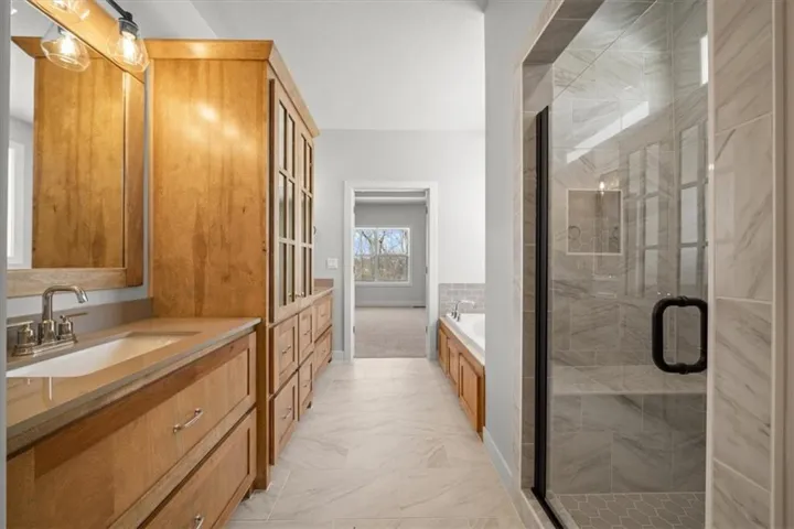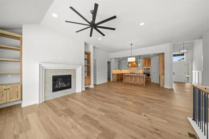 The Kendleton by SAB Construction is an elegant ranch home featuring 4 bedrooms, 3 full bath, finished basement, 3 car garage & sits on a beautiful daylight lot backing to greenspace. The open floorplan has so much to offer. From the high ceilings, beautiful fireplace and a spacious great room that flows right into the dining room and kitchen. The gourmet kitchen offers plenty of cabinets and a large island for an abundance of counter top space. The master suite is generously size and well-appointed with a walk-in tiled shower, double vanities and large walk-in closet. \r\n
