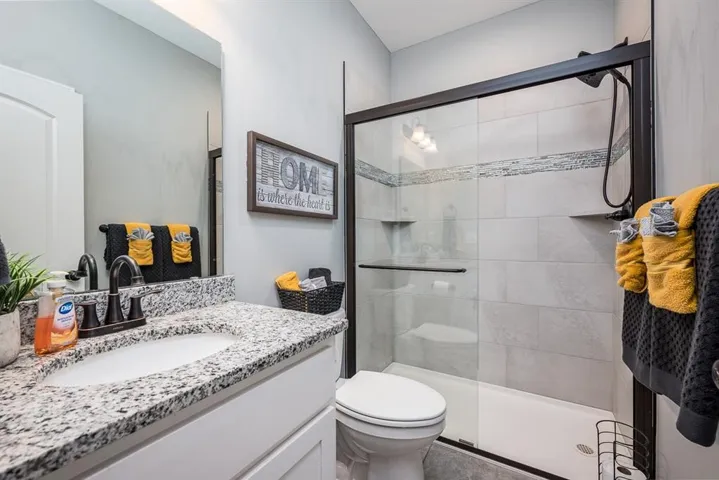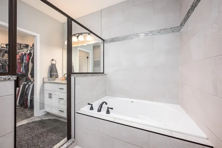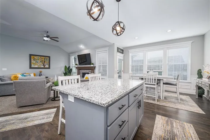 The kitchen is a chef’s delight with granite countertops, large island, stainless steel appliances, soft-close drawers, and a large pantry with a built-in electrical outlet.\r\n