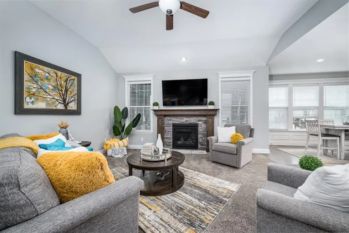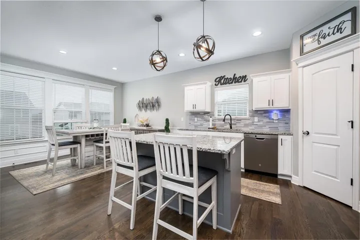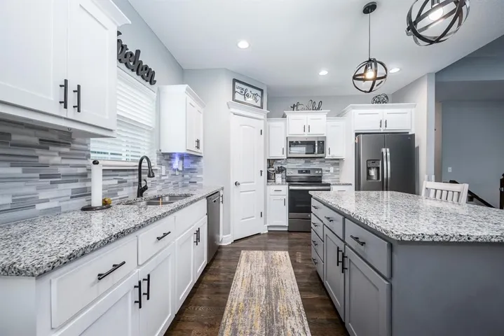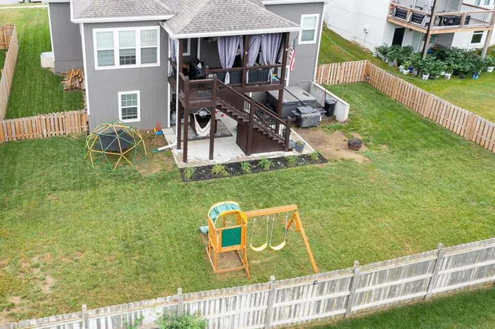 floorplan with full dining area, hardwoods, tile, fenced back yard and a covered deck. Huge basement rec space with plenty of windows, Master features a double vanity, HUGE walk in shower/whirlpool tub combo, large master closet. The master and two guest rooms with two full bathrooms (one is handicap accessible) on main floor. Three additional bedrooms and full bath in basement along with a second kitchen/wet bar. This home wants for nothing and is in walking distance to the neighborhood pool. Also has a front landscape water system. This property is minutes from the Legends Shopping Area and close to 435 and 7 Hwy.