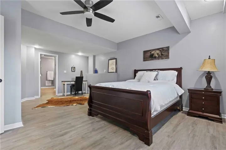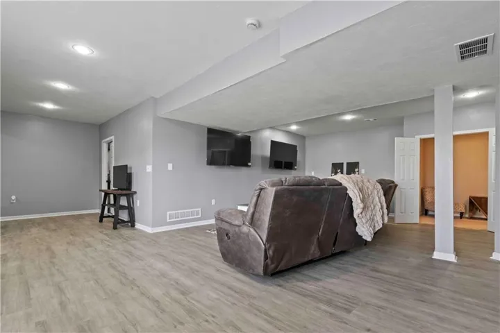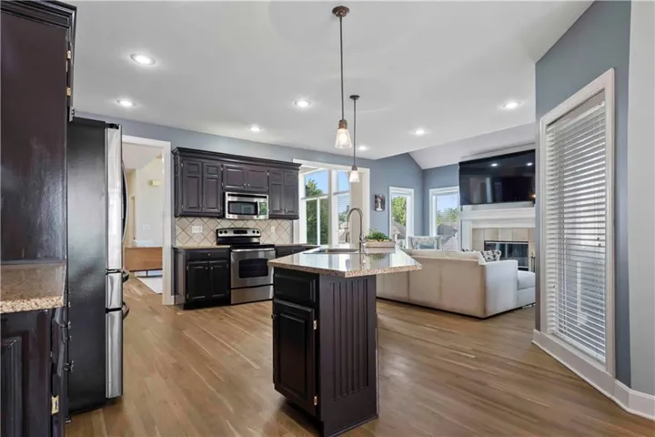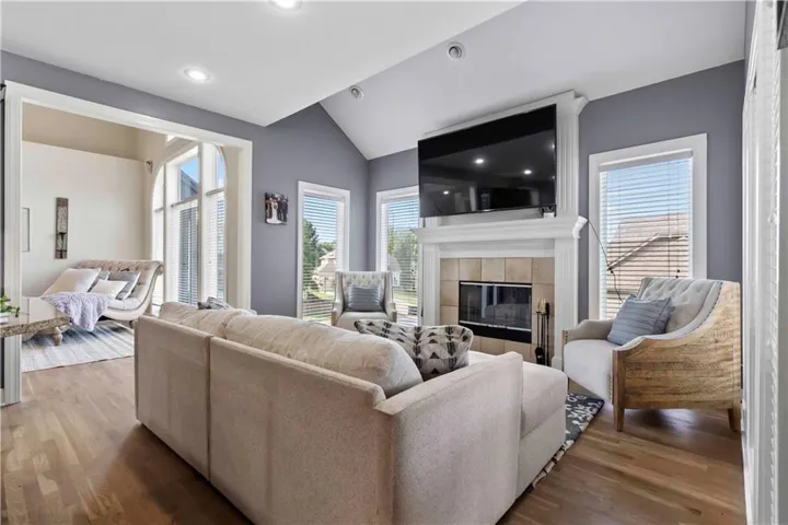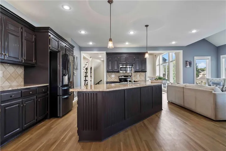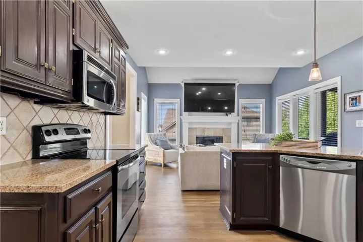 +"PublicRemarks": "Stunning 1.5 Story Home in Oaks Ridge! Home boasts over 4,000 sq ft of luxurious living space with $50K in Upgrades! Home features NEWER: Exterior & Interior Paint, HVAC (dual zoned), Tankless HWH and Hardwood Floors. Spacious Main Level is perfect for Entertaining w/Gleaming Hardwood floors, Great Room w/Soaring Ceilings, Hearth Room w/Fireplace, Formal Dining & Laundry Room. Beautiful Kitchen offers Enameled cabinetry, Granite Counters, SS appliances, Pantry & Breakfast area. Spacious Master Suite offers Spa-like bath & Walk-in Closet. Upper Level has 3 Bedrooms + 2 Full Baths. Newly Finished Walk-Out Lower Level features Large Rec Room (plumbed for Wetbar) & 5th Bedroom + Full Bathroom. Enjoy the outdoors on the covered Deck & Patio overlooking the fenced-in backyard situated on the Large Corner Lot. **Lee's Summit Address / Blue Springs Schools** The Award-winning Voy Spears Elementary School is located in the neighborhood. Located within close proximity to Restaurants, Shopping & Highway Access. Annual Property Taxes will be reduced by $3,100 after closing. Sellers to pay off HVAC loan that is paid through property taxes currently."