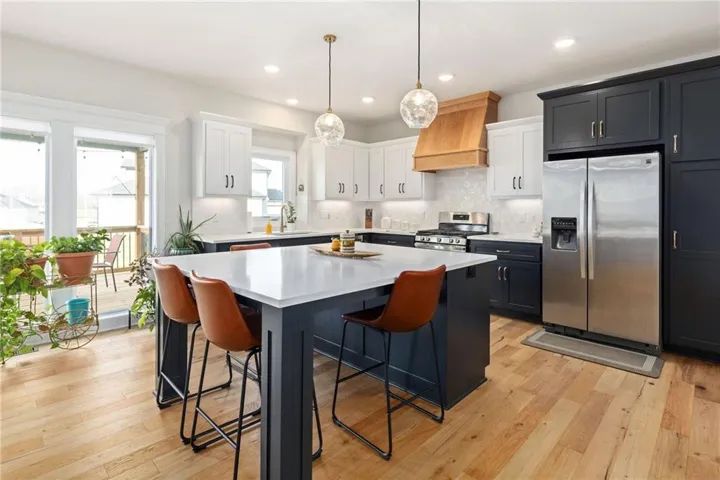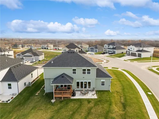 +"PublicRemarks": "Are you searching for that better-than-new home? One that’s move-in ready, with every upgrade thoughtfully completed & every finish selected to perfection? Welcome to your new home to kick off the New Year! Located in Highland Ridge on a corner lot, you’ll quickly see why this location is so desirable. With convenient access to both 169 and 435, this keeps you with an easy commute anywhere in the city. Let’s step inside and fall in love together. Beautiful natural-finish hardwoods flow throughout the main floor & will immediately set the tone. The formal dining room will grab your attention with the bold black-and-white palette & brushed gold chandelier. Off the dining area, a built-in workstation replaced the traditional mini bar, adding function without sacrificing style. Now, into the kitchen—your dream come true. The oversized island is perfect for casual meals & will become the gathering spot. Don't miss kitchen details include the locally hand blown glass pendant lights, mixed metal pulls & gas stove with natural stained hood to match the gorgeous floors. Open design flows seamlessly into the living room, where you’ll find all the must-haves: floating shelves, a wall of floor-to-ceiling windows & cozy gas fireplace. This unique floor plan offers a main-floor bedroom with a walk-in closet & full bath, tucked just behind the living room for added privacy. Upstairs you will find all bedrooms have large oversized closets, Two share a Jack-and-Jill bath, while another enjoys a private bath. The spacious primary suite is a true retreat, with room for a cozy seating area. The primary bathroom is a showstopper, vision yourself relaxing in the soaker tub & falling in love with the stunning green-tiled shower. Convince was in mind with the laundry room located on the 2nd floor connecting to the primary closet and hallway. This home has been customized and upgraded, offering you an opportunity to move in & mix your style into the neutral palette. Welcome 2025 at HOME!"