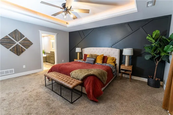 This well-kept one owner home has so many wonderful features! The open concept main floor includes the boot bench area off garage, fabulous kitchen and dining area with walkout to deck, cozy living room w/ floor to ceiling windows, gas fireplace AND an office! High ceilings, great lighting. Updated kitchen w/island (barstool space & additional cabinet and drawer space) Granite counters, custom cabinets, newer backsplash, loads of cabinets and gigantic walk in pantry! It's so nice! Upstairs, you'll find the spacious master on one side and three bedrooms on the other, laundry right of f the master and 3 full baths! Master has double vanities, his and her walk in closets, extra long shower and jetted soaker tub. Oil rubbed bronze fixtures, shaker style doors, fancy trim, mini-blinds, thermal windows. All bedrooms have private on suite bath access and walk in closets! Fabulous! Basement has full finished rec room with walk out basement, walks out to 36 ft patio! There's also additional storage and a great big gym (unfinished) on the other side of the rec room! Nearly 500 sq feet! Don't forget a pool key comes with the house! You're going to love it!