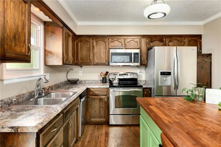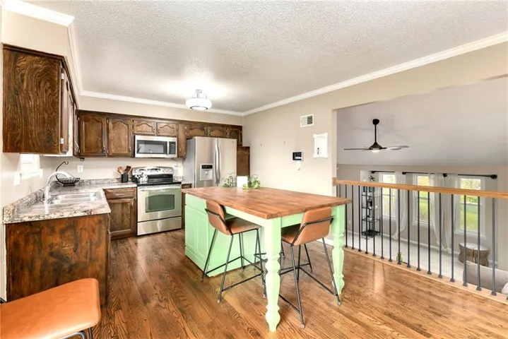 +"PublicRemarks": "Welcome to this Lovely Updated 3-bedroom, 2.5-Bathroom Home Located in the Highly Sought-After Blue Valley School District & in Walking Distance to the Elementary School. Situated on Nearly 2 Acres, this Home Offers Both Privacy & Space, w/Restrictions of an HOA. The Home Features Recent Updates, Including Energy-Efficient Windows, Fresh Interior, Stylish Front Door, Radon Mitigation System & New Sliding Door. As You Enter this Great Home You are Greeted w/Exposed Brick Fireplace, Adding both Warmth & a Touch of Character Along w/the Vaulted Ceiling. An Updated High Efficient Furnace Will Help w/Your Energy Bills. There is a Finished Lower-Level Rec Room that Walks Out to Your Massive Back Yard. Additional Living Space in the finished Sub-Basement Gives You 3 Separate Living Spaces for Your Family to Spread Out or Great for Entertaining. The 2 car Garage is 22’ wide & 1 Side of the Garage is 27’ Deep, Great for Extra Storage or even Storing Your Boat. This Great Property Offers a Serene Environment While Still Maintains Easy Access 69 Highway. Don’t miss out on the chance to own this Do Yourself a Favor & Don’t Miss Out on This Beautifully Updated, Move-in-Ready Home in a Prime Location! **Please submit your highest and best offers today by 4:00 p.m.**"