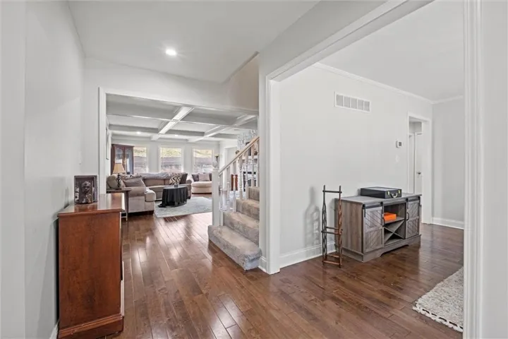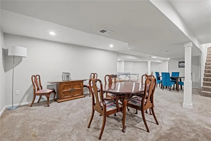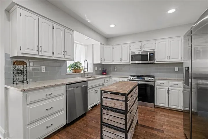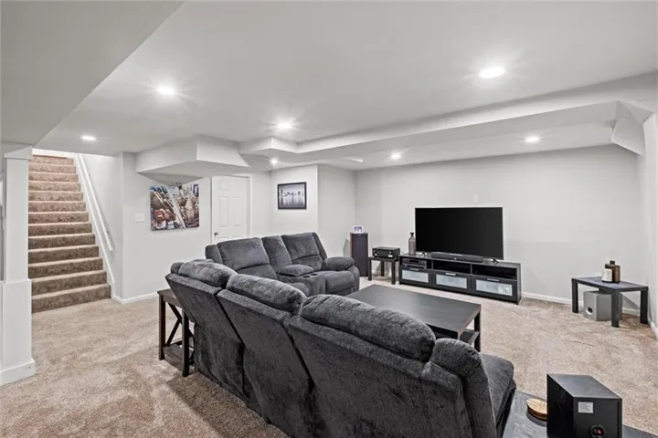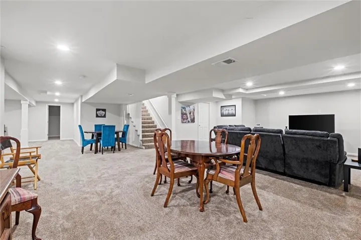 +"PublicRemarks": "FABULOUS 1.5 Story not far from the heart of Downtown Liberty! The wide Entry opens up to an open Living Room with beamed ceilings & a gas fireplace! Gleaming hardwood floors thru-out the main level! Formal Dining Room leads into the gorgeous Eat In Kitchen, replete with tons of natural light ~ stainless appliances (gas stove & refrigerator STAY), pantry & island! The elegant Primary Suite can be found on this level as well as the spa-like Primary Bath. This space has a large shower, dual vanities & walk-in closet! There is also a half bath & utility room conveniently located on this level! Meander upstairs to find a cozy loft space with skylight, that is perfect for studying ~ reading ~ exercise or movie viewing! Three additional Bedrooms can be found on this level, all with ceiling fans & 2 with walk-in closets! Take a turn around and go back to the lower level where an ENORMOUS Finished Basement awaits you! SO much space and SO many options! Ample storage as well! Finally, enjoy entertaining or relaxing in your large backyard with gorgeous deck! Located minutes from the shopping & restaurants of Liberty ~ William Jewell College ~ and less than 30 minutes from Kansas City's recently renovated airport, this is a GREAT location for anyone! Come see for yourself ~ make this house your next HOME!"