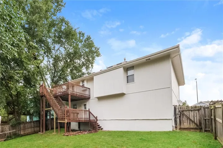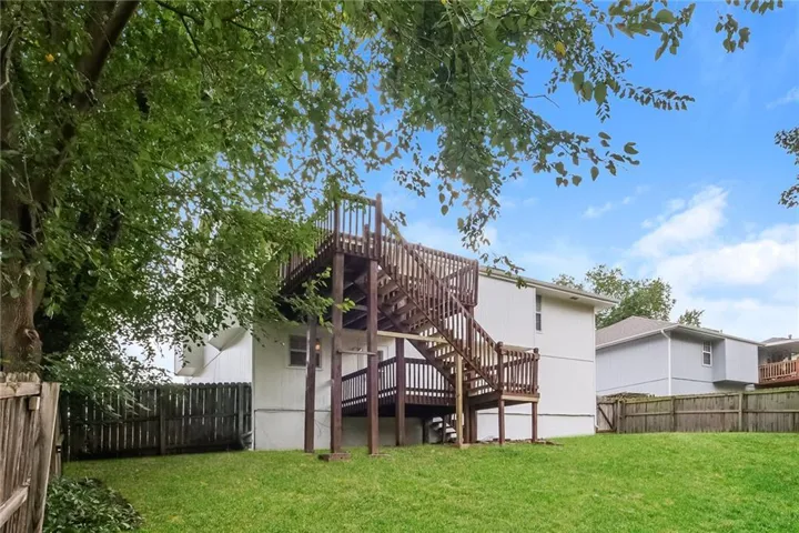 +"PublicRemarks": "Well maintained home in Blue Springs school district! New exterior/ interior paint. Kitchen features granite countertops, SS Appliances, updated vanities in bathrooms! Finished basement space allows for extra family room, office, or rec room! Tons of natural light on the main level and primary bedroom features large walk in closet! Large shaded lot!"