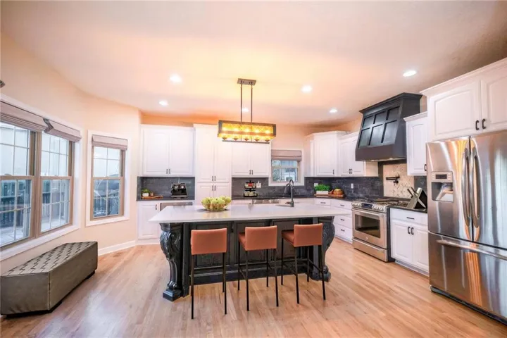 +"PublicRemarks": "$7500.00 BUYER INCENTIVE. SELLER MAY USE TOWARDS CLOSING COSTS, 2/1 RATE BUY DOWN, OR COSMETIC UPDATES. Lovely custom built home with 9 foot ceilings, 4 beds, 3 baths, and one non conforming bedroom in the lower level. 50 year warranty on 1 year old roof. NEW paint in living room, dining room, kitchen, laundry room, hall, stairwell, family room and the non conforming bedroom. Hardwood floors throughout main level. The large kitchen has a newer gas stove with a beautiful custom range hood, pot filler and large custom island that will make anyone happy to cook. The copper island sink in the island has the prettiest details. Open concept allows the freedom to not miss out on any activities in the main living areas. Gas fireplace for those cold wintry nights. Large windows throughout to allow natural sunlight. Primary bedroom with vaulted ceiling has walk-in closet and en-suite. Huge deck spans the length of the back of the home. Enjoy a dip in your own hot tub, or light a fire in the outdoor fireplace under the pergola and let your stress melt away. Finished daylight basement with family room, fourth bedroom and full bath. The non conforming bedroom that could be used however you want, media room, office, play room, bedroom, etc. New carpet in the basement. The deep 3 car garage has extra tall ceilings that could allow for even more storage. Fenced yard, plus electric in the shed and another outlet near the garden that was used for an above ground pool. Walls are framed 12 inch on center rather than of the standard 16 inch. Asparagus garden. Tonganoxie is a perfect location to drive to KC or Johnson County or Lawrence easily. Kansas Speedway, Legends area and American Royal is only about 15 minutes away. Great home, ready for you!"