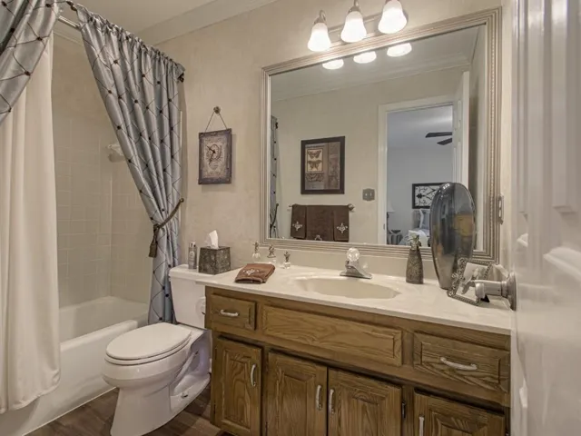 +"PublicRemarks": "Unique 1 1/2 Story with TWO Bedrooms on Main Level in Outstanding Lakewood Subdivision and backs up to the 3rd FAIRWAY! Great room w/fireplace Vaulted Ceilings. Plantation Blinds and remote operated blinds leading to covered deck from dining room and master suite. Roomy kitchen with kitchen island, double pantry, wood floors & all appliances stay! Main level laundry. Master suite has w/ vualted ceilings + Master bath w/ ceramic tiled floors, double vanity, walk in closet, walk in shower & whirlpool tub! 2nd Level bedroom with its own private full bath PLUS TWO Walk In Closets!"