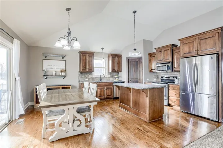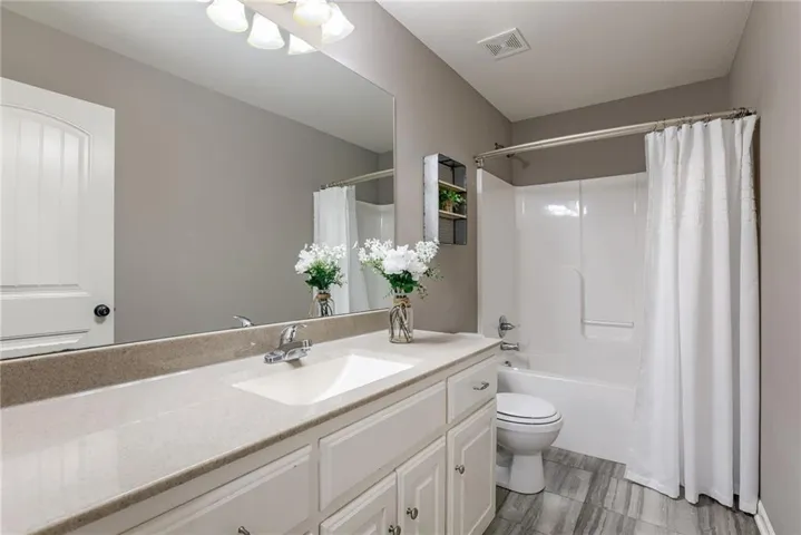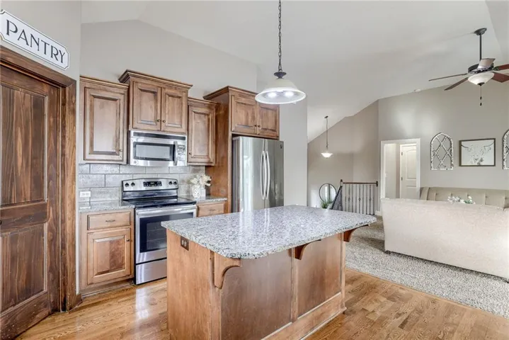 +"PublicRemarks": "Great home to earn some instant equity with just a few cosmetic updates! 4 bedroom/3 bath split entry home sitting in a cul-de-sac in sought after Woodland Creek subdivision! Enjoy entertaining in your large kitchen which features hardwood floors, large granite island and HUGE pantry! Unwind each night in your spacious master bedroom with ensuite master bath and HUGE walk-in closet! Main floor laundry! Enjoy extra family space in your finished basement with additional bedroom and full bath! Relax outside on your covered deck overlooking green space! Fenced portion of yard is perfect for pets! Smithville school district! Don't miss out on this one! This could be your perfect home!"
