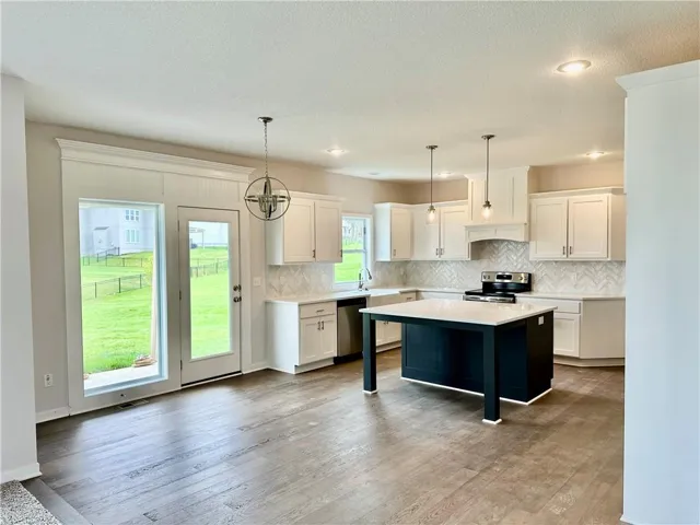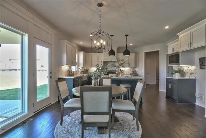 +"PublicRemarks": "Five bedrooms and 4 baths, formal dining, great room with fireplace, breakfast room, center island kitchen and more. Spacious, grand entry is flanked by a formal dining room w/trayed ceiling, great room w/fireplace enjoys a lot of natural light streaming through the windows. Cook's kitchen includes center island, granite countertops, large walk in pantry, stainless appliances, apron sink, custom cabinets with upgraded hardware w/soft closing drawers & doors, cabinet hood and built in microwave and nice breakfast room. Beautiful hardwood floors throughout the entry, breakfast room, kitchen and mud room. First floor 5th bedroom/flex room includes a closet and 3/4 bath adjacent to bedroom. Follow the U-shaped staircase to two bedrooms sharing a Jack & Jill bath w/separate vanities and walk in closets. Third bedroom has its own private bath and walk in closet. Down the hall you will arrive at the private owner's suite with sitting room and vaulted ceiling. The luxury bath features double granite vanities, tile floors, custom cabinets, separate tiled shower and tub. A huge walk in closet leads into laundry room with granite folding table and room for baskets. Also, attached to the hallway, this laundry room is convenient for all. Covered Deck, 3 car garage, sprinkler system and more! Prairie Farms is located adjacent to the newly renovated Lake Olathe with a wonderful variety of outdoor activities. Prairie Farms offers a large pool, cabana, play area and walking trails. It's a great place to call home!"