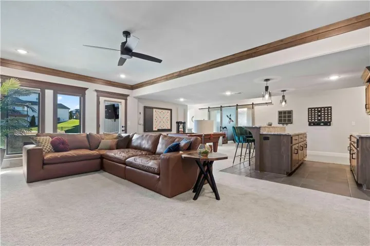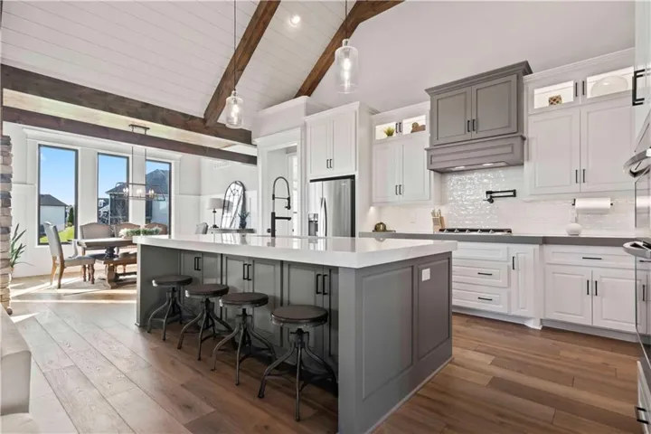 +"PublicRemarks": "Walk into a stunning 1.5 Reverse home with a very versatile floorplan on a wonderful cul-de-sac lot. The vaulted ceiling in the greatroom as you enter is sure to impress! Opens to a huge island and kitchen that is great for everyday living and entertaining. Large pantry and home control center/desk just off the kitchen. The primary suite on the main level is very spacious and opens to a double vanity primary bathroom with separate soaker tub. The super-sized closet and laundry are adjacent. Screened in deck off the kitchen is a great getaway space. The lower level features a wonderful recreation space for watching sports or movies, a bar area and currently a pool table. Three private bedrooms, two with adjoining bath and a third with a separate bathroom make the lower level great for everyday family living or to allow guests to have their own space. Walk-out to a huge fenced yard, patio and fire-pit area. Winterset Valley offers access to multiple pools, walking trails and sports courts and is very convenient to shopping, restaurants, highway access and outstanding Lee's Summit Schools."