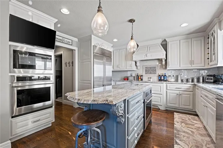 +"PublicRemarks": "Absolute stunner on a corner cul-de-sac lot featuring a private backyard oasis, crystal-blue pool, and gorgeous updates throughout! The curb appeal is a perfect 10+ with Hardy Board siding , fresh exterior paint (2024), a charming brick-lined walkway, and a new roof. Step inside to find a home that impresses at every turn. The award-winning kitchen is truly the heart of the home, showcasing custom white cabinetry, a Viking range with gas cooktop, granite and honed marble countertops, a massive Sub-Zero wine fridge & beverage drawers refrigerator, Viking stainless steel refrigerator (stays), new dishwasher, abundant counter space, and a sunny eat-in area. The kitchen opens seamlessly to the living room, which features freshly stained custom wood paneling and woodwork, a beamed ceiling, custom built-ins framing the fireplace, and a full wall of Andersen windows overlooking the stunning pool and backyard. Just off the living room is an inviting expanded four-season room with custom designer tile, beautiful views, and flexible space perfect for relaxing or entertaining. The main level also offers great flex space and a formal dining room conveniently located off the kitchen. Upstairs, enjoy three spacious secondary bedrooms plus a generous primary suite. The primary suite features neutral décor, a refreshed bathroom with remodeled vanity, and a large custom California Closet. The secondary bedrooms are all generously sized with neutral finishes, updated carpet and LVT flooring, and access to a neutral bath and Jack-and-Jill layout. The unfinished basement provides a blank canvas with expansive space ready for your custom finish. Outside, the incredible backyard is an entertainer’s dream with a new oversized composite deck overlooking the fenced yard and a 18x28 saltwater pool surrounded by lush, extensive landscaping— truly a private oasis. Ideally located minutes from highway access, top-rated schools, shopping, dining, and more. This exceptional home is a must-see!"