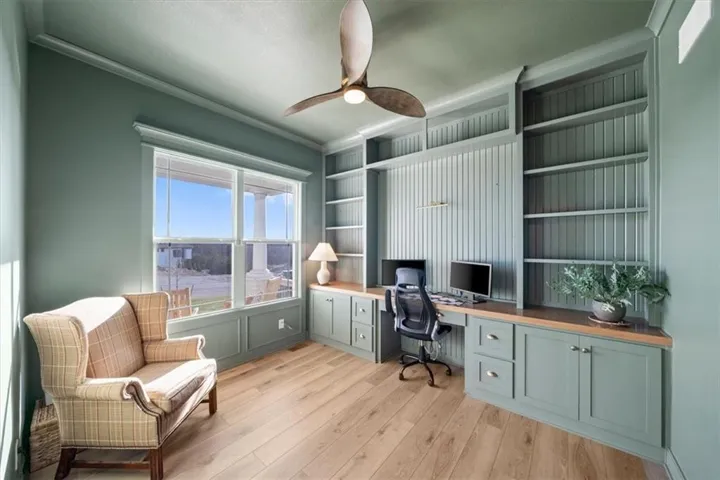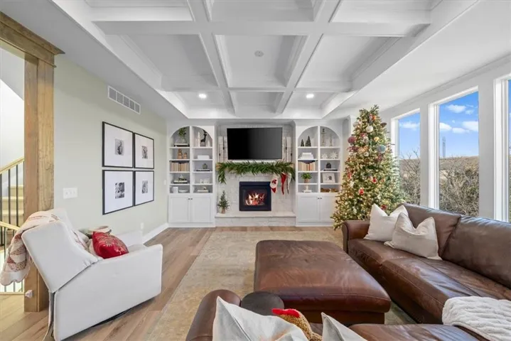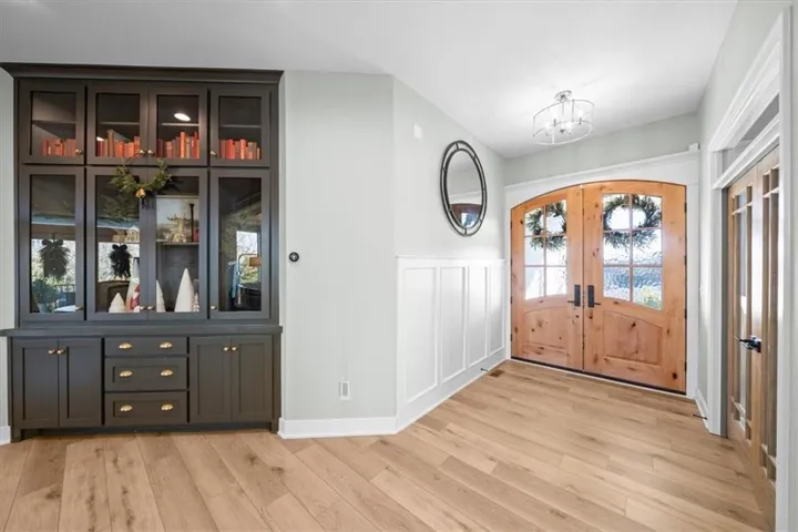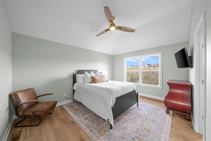 +"PublicRemarks": "Prepare to be wowed by this stunning Valley Ridge at Cedar Creek home on a lovely treed lot! So many custom selections make this one feel like it’s straight out of a magazine, from the designer color palette and modern fixtures to the warmth of the hardwood floors and the floor to ceiling windows that flood the home with natural light. Spacious open floor plan with a main level home office, large living room with beautiful stone fireplace flanked by built-ins. A cook’s dream, the kitchen has a generous island, walk-in pantry with convenient "Costco" door, butler’s pantry, stainless appliances, pot filler, and custom cabinetry including a gorgeous built-in display cabinet near the dining area. The dining area leads to the covered deck, perfect for taking in the views of trees, wildlife, and dramatic sunsets. A powder room and mud room complete the main level. Upstairs, you’ll find all four spacious bedrooms, all with vaulted ceilings, including one with a private bathroom and the perfect primary bedroom with a spa-like en suite including dual walk-in closets and heated floors. Second floor laundry room for your convenience. The unfinished walkout basement is ready for a rec space, conforming 5th bedroom, and is stubbed for an additional bathroom. You’ll still have ample storage space left including the reinforced storm room. There’s a lot to love about this home including built-in speakers on the main level, in-ground sprinkler system, designer ceiling fans throughout, a large 3-car garage, and much more. Living in Cedar Creek, you’ll enjoy access to three community pools, lighted tennis/pickleball courts, a sand volleyball court, playground, an indoor gym with additional sport courts, a reservable community lounge with kitchen and bar, miles of walking trails, and use of the nearby 65-acre Shadow Lake. Close proximity to Olathe City Park and Olathe schools. This one truly has it all – perfectly move-in ready!"