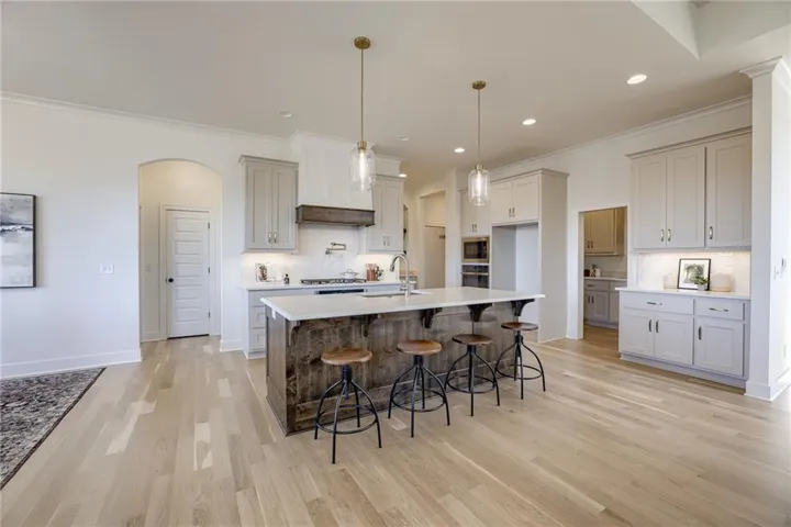 +"PublicRemarks": "This gorgeous new 1.5 story by French Homes has a lot of Wow Factor and offers main level living with an open kitchen, dining room & great room. The main level also boasts a large walk-in pantry, Butler's Pantry and beverage Bar! The master bedroom/bath & 2nd bedroom/bath, plus laundry room with sink are also on the main level. Three bedrooms, two baths & a loft are on the upper level. Unfinished walkout lower level is ready for buyer to finish. Wood floors in Great room, Kitchen, Dining room, Pantries, Master Bedroom, Bedroom 2/Office and entry; tile floors in baths & laundry; Granite or Quartz counters in kitchen & all baths; covered deck w/Fireplace off dining area. Lower level walks out to another spacious deck. Plus Much More! Room sizes, Sqft & taxes are estimated. PHOTOS ARE OF THE ACTUAL HOME"