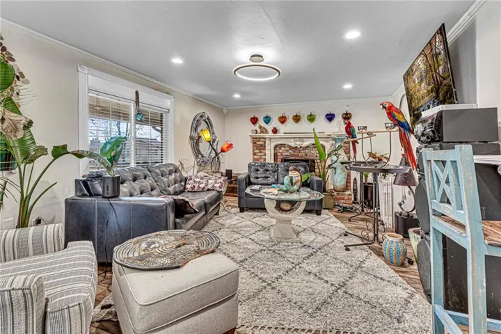 The brick facade features classic columns and welcoming front patio that set the tone for a home brimming with personality. Enjoy a beautifully landscaped yard, complete with a tranquil fountain centerpiece and cozy seating areas, ideal for relaxing or entertaining outdoors. Step inside to a bright, inviting living room featuring updated recessed lighting and an eclectic charm. A brick fireplace anchors the space, creating a warm, cozy atmosphere for family gatherings. The kitchen boasts fresh white cabinetry, updated countertops, and stylish tile backsplash. Stainless steel appliances and modern lighting pair perfectly with the vintage charm of the eat-in dining space. Whether hosting friends or enjoying a quiet morning, this space is designed for comfort and convenience. The home features four bedrooms along with two updated bathrooms offering modern fixtures and finishes. Lower level features a versatile finished space for a family room, home office, or gym.\r\n