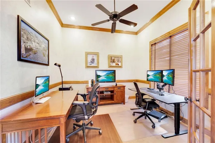 +"PublicRemarks": "Discover this meticulously maintained gem in The Paddock at Richardson Ranch, offering a perfect blend of comfort, elegance and wide-open main level floorplan, while being located on a quiet cul-de-sac for privacy. The centerpiece of this home is the massive granite island in the kitchen, perfect for gatherings. The kitchen offers a walk-in pantry, built in oven, cooktop and stained hardwood floors. Put your feet up in the adjacent living room to enjoy a cozy fire while watching your favorite movie or sporting event. The main level also features a dining room, private office space and half bath. The open staircase with wrought iron spindles takes you to the 2nd story where you can relax in the oversized master suite which allows for a comfortable seating area plus large sized furniture, and still plenty of room. The master bath has separate vanities with tons of counter space, drawers and cabinets, massive whirlpool tub, tiled shower and expansive walk-in closet. Additionally, the 2nd level has a bedroom with private bath and walk-in closet, and two additional bedrooms sharing a Jack & Jill bath . As you enter the lower level you step into an entertainment mecca with an arcade vibe. Plenty of room for your favorite game tables, and still space for a media area. There is also a bar area for your favorite snacks and beverages. An additional oversized room can be used as an exercise room, non-conforming 5th bedroom or a second office. The backyard can be accessed from the kitchen or from the first set of steps leading to the lower level. There is also plenty of room in the 3 car garage. The Paddock features a community pool and well maintained common areas."