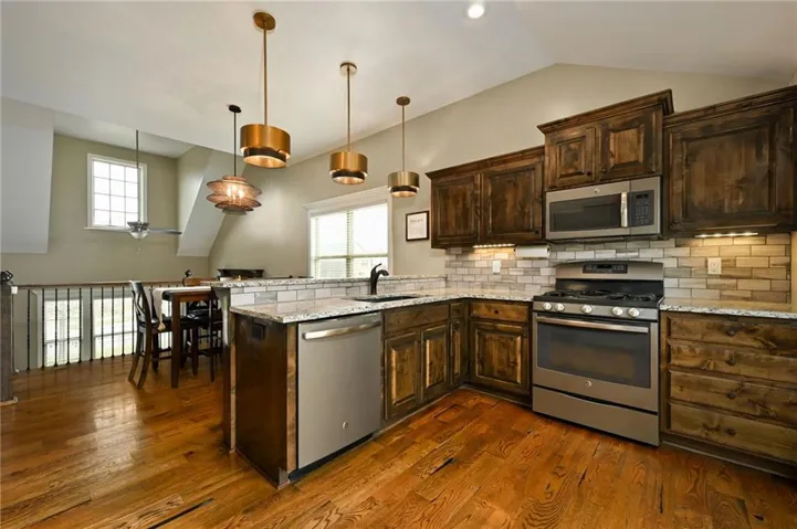 +"PublicRemarks": "This beautifully cared-for front-to-back split shines with upgraded fixtures, chic vanities, and stylish details throughout. Warm hardwood floors, rich cabinetry, granite countertops, and elegant tilework make the kitchen a standout, with easy access to the deck and patio leading to a wood-fenced backyard—perfect for relaxing, entertaining, or letting kids and pets roam freely. The serene primary suite features a spa-inspired bathroom, while two additional bedrooms upstairs provide comfortable accommodations. The lower level offers a spacious fourth bedroom, a full bath, and a cozy second living area—an ideal retreat for guests or extended family. Enjoy the community pool or explore nearby restaurants, shops, and entertainment options just down the street. This home is the perfect blend of charm, functionality, and prime location!"