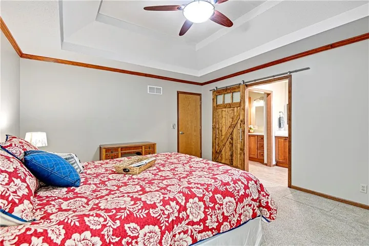 +"PublicRemarks": "Back on market, no fault of seller. Home is priced under recent appraisal, so their loss is your gain! Come tour this charming home, perfect for 2025! It offers a blend of style, comfort, and efficiency. The owners have added numerous upgrades to make this house a true gem. Highlights include an active solar panel system with a 25-year transferable warranty, an impact-resistant brand new roof, custom shutters, and an expanded tiered composite deck ideal for relaxation. Inside, you'll find newer Low E double-paned Pella windows, a stunning tiled flooring entryway, bamboo flooring in bedrooms and beautifully updated bathrooms and kitchen. Storage is abundant with a sub-basement and custom cabinetry featuring fully extending roll-out racks. The 2023 furnace and 2016 heat pump, paired with added insulation in the spacious, finished walk-out basement, ensure year-round comfort, new interior paint and more. Best of all, this home is just 2 minutes from Blue Valley schools—move in and start enjoying this well-cared-for home right away!"