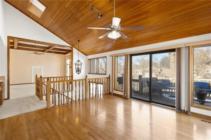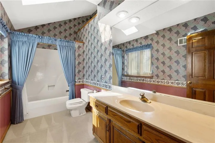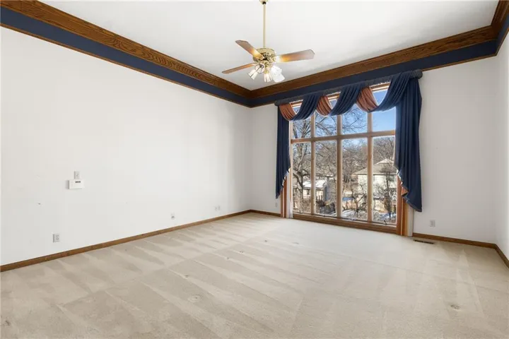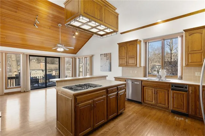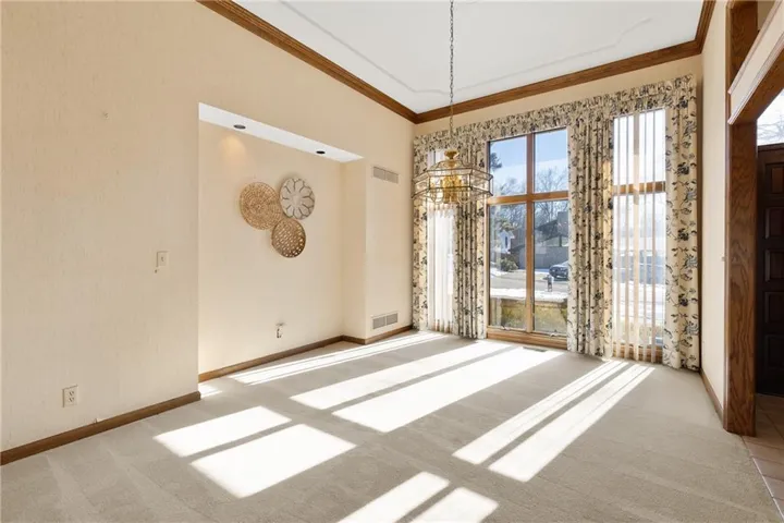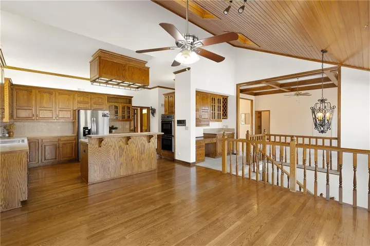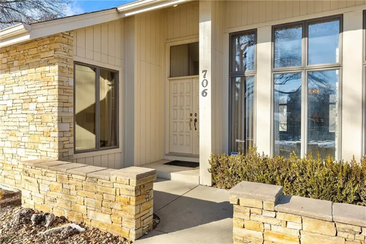 +"PublicRemarks": "OFFER DEADLINE: THURSDAY, JANUARY 30th @ 8:00 PM. Nestled in the prestigious, tree-lined neighborhood off Red Bridge, this stunning home blends contemporary 1980s architecture w/modernism & postmodernism, showcasing an asymmetrical façade w/stone accents. Located in a peaceful cul-de-sac, the property welcomes you w/a circular driveway leading through a stone wall entry to a charming courtyard & covered front porch. Inside, the foyer opens to a formal dining room & the expansive great room, which features a coffered ceiling, a striking stone fireplace w/a wooden mantle, & floor-to-ceiling windows that bathe the space in natural light. Adjacent to the great room, a wet bar & desk area flow into the vaulted breakfast area w/wood floors, skylights, & walkout access to a multi-tier deck. The open kitchen is a chef's dream w/a Jenn-Air cooktop island, double ovens, a SS refrigerator & dishwasher, abundant cabinetry, & a butler’s pantry area next to the walk-in pantry. A conveniently located laundry room offers built-in cabinetry, a sink, & a movable hanging closet. The main level includes a second bedroom w/a cozy window seat & an adjacent hall bath, while the owner's suite boasts vaulted ceilings, floor-to-ceiling windows, & an en suite bath w/skylights, a jetted tub, tiled shower, & walk-in closet. Upstairs, an office landing leads to a third bedroom w/a private full bath. Steps from the great room lead to a martini deck, & further down, a fourth bedroom w/daylight windows & an adjoining bath. The lower level features a family room w/a masonry fireplace & patio access, a recreation area w/a wet bar, & French doors leading to an exercise room w/built-ins. The exercise room connects to a workshop w/outdoor access & a built-in storage area. Conveniently located near private schools from primary to post-secondary, this exceptional home is the perfect balance of design, functionality, & location."