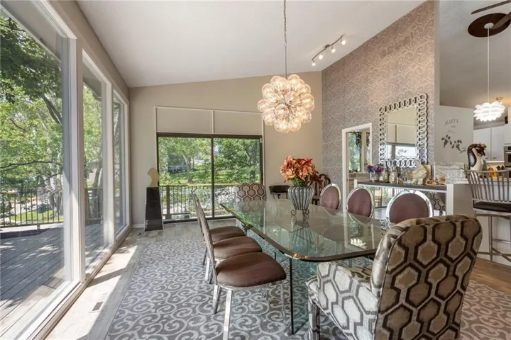 +"PublicRemarks": "WOW! Prime location and rare FLAT lot on some of the best water in Weatherby Lake! Imagine yourself enjoying this beautiful yard and your own private dock on deep water. The backyard also features covered boat space or racquetball court. Inside is waiting for your special touch - you will enjoy breathtaking lake views through the floor to ceiling windows on every level. There are two large living spaces, three bedrooms + fourth, non-conforming bedroom and up the stairs from the living, a bonus space with private exterior access that can be used as an office, sunroom or whatever you can imagine. The large kitchen and dining room are perfect for entertaining family and friends. Plus, a six-car tandem garage perfect for a workshop or car collector. The possibilities are endless!"