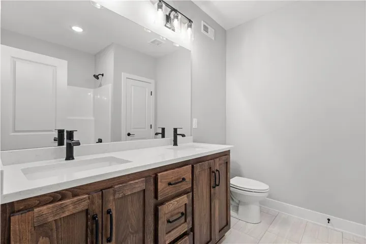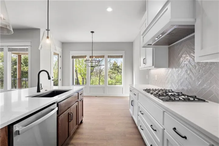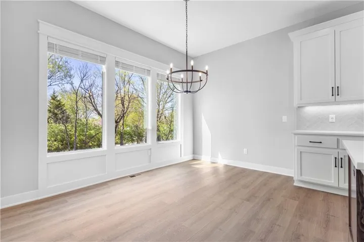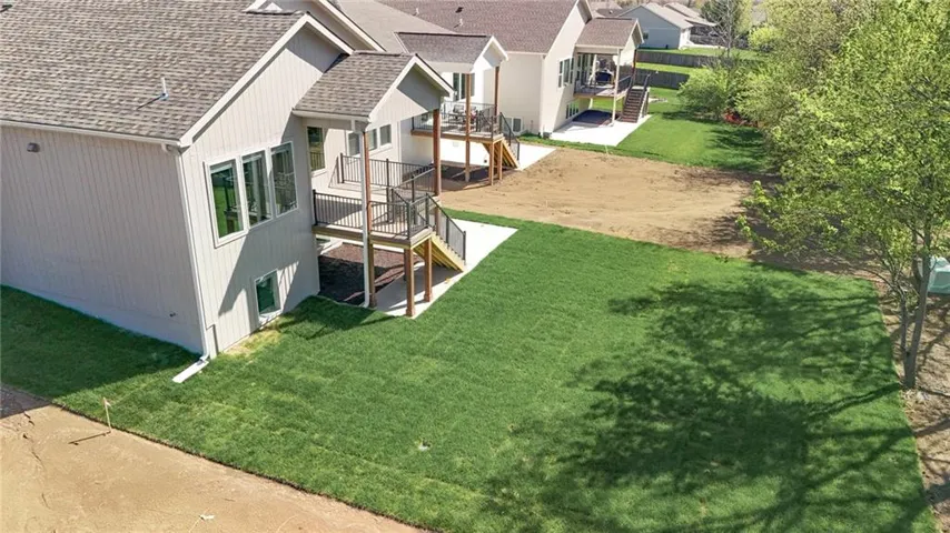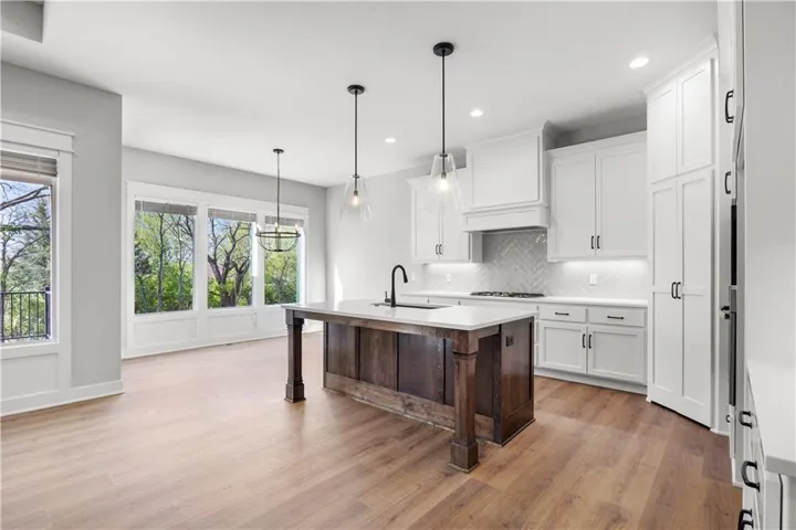 +"PublicRemarks": "Start the New Year with a New Home! On schedule to be completed and move in ready January 2025, this Monterey Reverse 1.5 by award-winning KC builder, Inspired Homes, features an open floor plan, 10’ ceilings on main, beautiful fireplace with built-in cabinets/floating shelves, custom oversized windows, gas cooktop with built in SS GE appliances in a gorgeous kitchen, soft close doors and drawers on custom site-finished cabinets and finished basement. Don’t let the 2 car garage photo fool you, this is a SPACIOUS 3 car TANDEM garage with loads of storage! Upgrades include all custom cabinets, quartz countertops, high-efficiency HVAC, 50-gallon water heater, humidifier, irrigation system, garage door openers already installed... the list goes on! All this plus an oversized covered deck with additional poured patio...and no backyard neighbors! Kensington Farms offers a sparkling pool, playground, greenspace, and conveniently located within 1-5 miles to everything (grocery, shopping, movies, golf, lakes, recreation, entertainment and nightlife)."