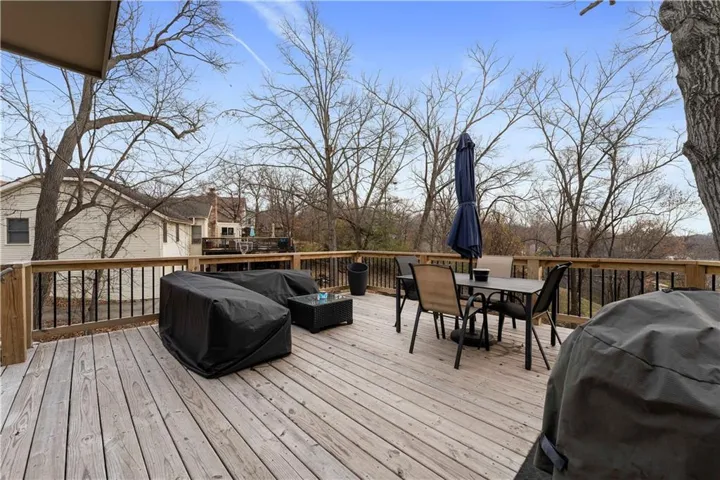 Outdoor Paradise: Step out onto the spacious deck overlooking a serene, tree-filled view—perfect for morning coffee or evening dinners. Below, the covered patio and extended deck offer additional outdoor entertaining areas, complete with twinkling string lights for ambiance.\r\n