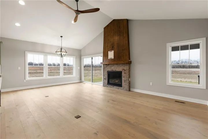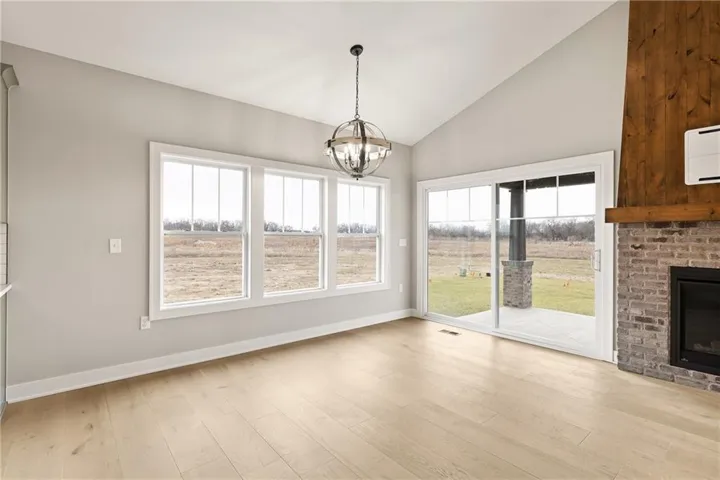The great room features a captivating floor-to-ceiling gas fireplace, elegantly trimmed with brick and accentuated by custom built design elements above the mantel—an ideal spot for gathering with family and friends.\r\n
