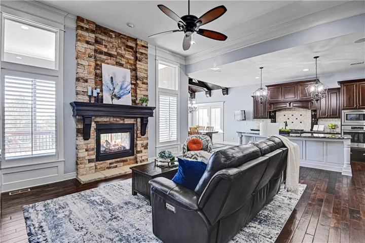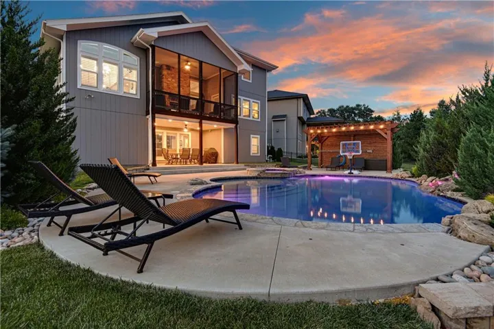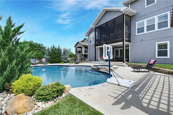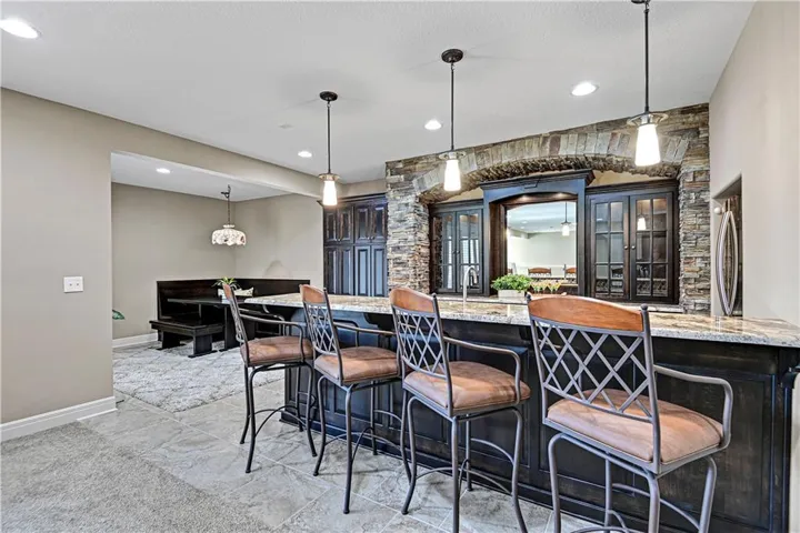 +"PublicRemarks": "Nestled on a quiet cul-de-sac this meticulously maintained Engle built home checks all the boxes. Enjoy your private backyard paradise with gorgeous pool, spa, waterfall & pergola. This popular Laurel floor plan offers an open flow, which is perfect for entertaining, a main level office along with a main level primary suite. You'll also love the convenience of two Laundry Rooms, one on the main level and one on the second level. The large open living space flows seamlessly from Kitchen, Dining & Great Room with a see-through fireplace looking out to the tranquil screened porch. All with a breathtaking view of the pool and lushly landscaped backyard. The lower level wet bar & Rec Room provide the perfect space for entertaining. Sure to impress, the large custom bar is accented by gorgeous stone. Guests will gather around the bar or nestle into the built in banquette while grabbing a beverage between laps. Then take the party outside to the stunning backyard. Dip into the heated pool, relax in the spa, soak in some rays on the sun shelf or take a break from the rays under the pergola. All while enjoying the relaxing sounds of the rock waterfall. This one will truly take your breath away."