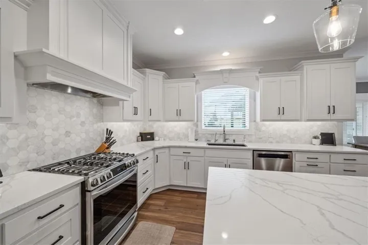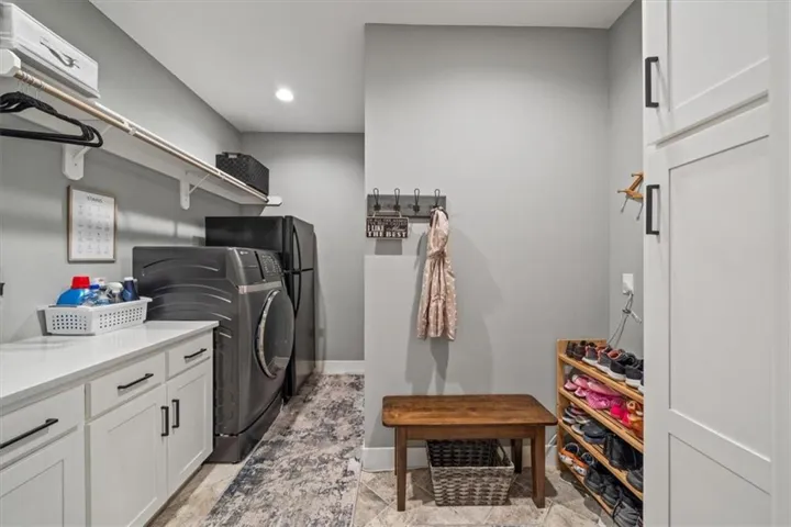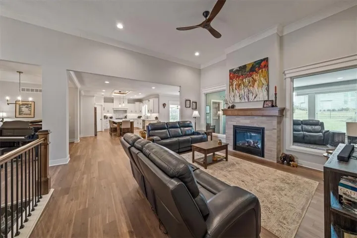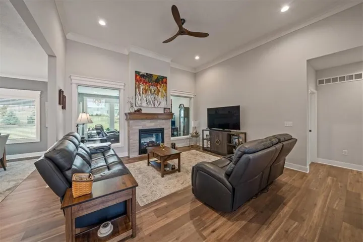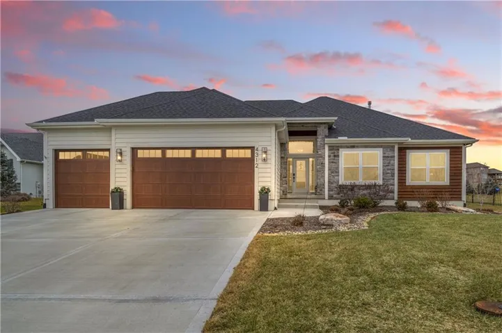 +"PublicRemarks": "Golf Course Living, a second tier lake view, on a cul-de-sac and tons of space!! This home has it all! Gently lived in, less than three years old with many upgrades/additions to this great floor plan. A few highlights include two living areas with a see through fireplace and three bedrooms on the main floor, a second dining area (or use this space as a music or reading space) and a wonderful kitchen with amazing counter space including a 9+ foot island, drawers or roll out shelves for all lower cabinets and a nice pantry. The primary suite boasts a spacious sink area and a large walk-in shower with no glass to keep clean! Two other bedrooms, one with built-in cabinets/granite countertop are also on the main floor. The lower level brings two more bedrooms, large rec room, bar area and full bath plus TONS (~1,200 sq ft) of storage, workout, and/or playroom space. Other upgrades and additions include a fully fenced yard, EverLights permanent lighting for all holidays/occasions, additional landscaping, pergola over the patio, 220V in the garage for car charging, antenna in the attic for robust local channel availability, high efficiency furnace, and a whole house humidifier. The Hague water softener and an osmosis system for extra clean drinking water stay with the home. Golf cart is included - use it to drive to public restaurant at the clubhouse - The Nest!! Easy access to K-7 and all parts of the city! It is just 10 minutes to the Legends dining, entertainment and shopping district and an easy 30 minutes to the airport. Acclaimed Basehor-Linwood Schools. Owner/Agent."