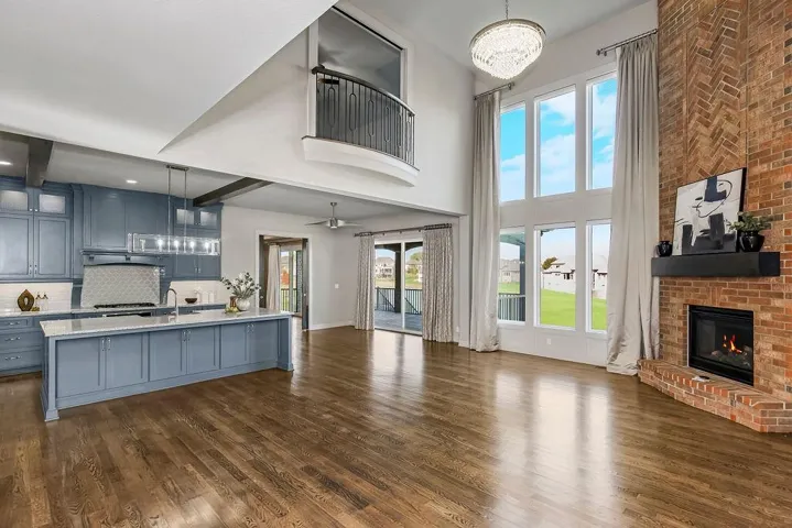+"PublicRemarks": "Unique opportunity to own your very own luxurious dream home, nestled on one of the rare Terrybrook Farm's waterfront estate lots! New Modern tile is coming soon to the living room fireplace! This breathtaking home shows just like new on the inside and out! This home boasts an elevator which takes you to all 3 levels. Great Room with floor to ceiling fireplace, a wall of windows with remote controlled blinds, and tall vaulted ceilings! Lots of beautiful features throughout including gleaming hardwoods that travel through the main floor. Custom kitchen with beautiful cabinets and hardware, massive pantry, a butler's pantry (cooktop and room for a full sized fridge), double oven, and additional oven. Tons of counter/work space with granite, HUGE kitchen island with sink! Screened in deck with fireplace! Dynamic curved staircase greets you in the entry! The Master Suite comes with a private spa-like bath with two vanities, tiled shower, and a large walk-in closet with built-ins. 4 bedrooms on the top level all with full bathrooms and walk-in closets. Finished walkout basement comes with so much more living space including a true bedroom and bath, a wet bar with seating and pendant lighting, a theatre wired for projector and surround sound, and an exercise room! Backyard with iron fencing that backs to a large pond with fountains! Gorgeous landscaping and water features! Don't Miss the 4 car garage! Amenities include a swimming pool, clubhouse, community covered outdoor seating, fitness center, sports court, and children's playground! Super close to fine dining and shopping, as well as Heritage Park! Schedule a showing today!"