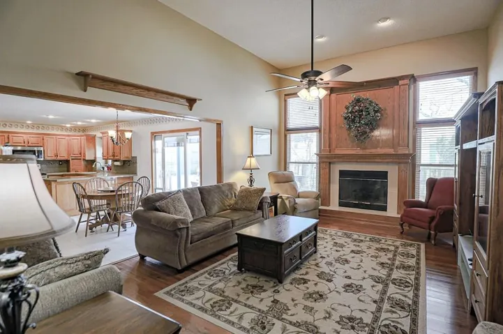 Well maintained 1.5 story on a quiet cul sac. Close to middle school and hwy. Fantastic floor plan with a vaulted great room with fireplace opens up to kitchen with 2 pantries, granite countertops & beautiful backsplash tile, Lots of cabinets and counters. Beautiful wood floors. Formal dining, Spacious master bedroom with large bath w/huge walk in closet, 1st floor laundry room off kitchen, Oversized garage approx. 26X24 w/epoxy like flooring for easy maintenance. 2 nice bedrooms upstairs w/walk in closets. Huge unfinished basement for lots of storage or to be finished off.\r\n