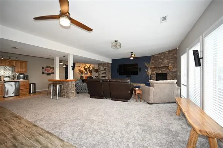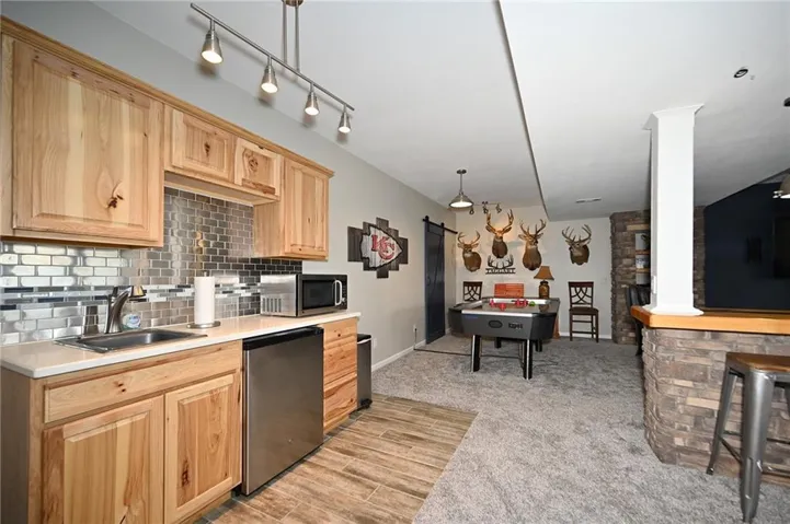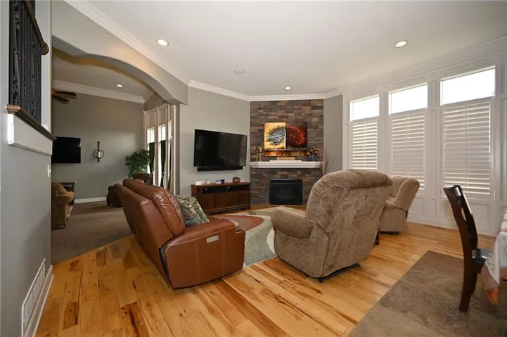 +"PublicRemarks": "Gorgeous custom built home. 1.5 story with main floor master suite. Too many extras to mention. Spacious kitchen with gas cooktop w/potfiller, walk in pantry, dining, and hearth room. All bedrooms have walk in closets and bathrooms attached. Bonus room on upper level for play! Main floor master has custom tray ceiling, huge walk in shower and double tier master closet. Study on main level coulld be formal dining room. One of the largest floor plans in the neighborhood. Lower level has it all for games, TV, fireplace and more. Yard fenced and beautifully maintained with sprinkler system. You must see to appreciate. A+ Platte County schools, close to airport, dining and entertainment."