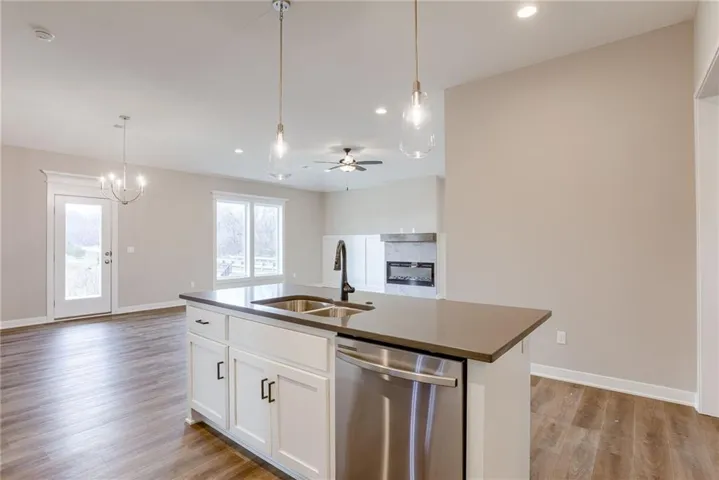 +"PublicRemarks": "Newly finished - the Freedom Ranch by Authentic Homes in the maintenance provided Boulder Springs subdivision. Backs to walking trail and open green space - enjoy the views from the covered patio! Zero entry - no stairs - 3 bedroom, 2 bathroom ranch floorplan. Open area living in the Kitchen/Great Room with fireplace and beautiful Luxury Vinyl Plank Flooring. The kitchen features enameled cabinets, soft close drawers, pantry, island, stainless appliances, gas stove, and quartz counter tops. Primary Suite is located on the back of the home for privacy - double vanities, quartz countertops, separate soaking tub, tiled shower, and walk-in closet. Two front bedrooms and bathroom are perfect for guests and/or office. Nice sized 2-car garage. HOA includes lawn maintenance, exterior painting, snow removal, sprinkler winterization, and access to swimming pool, play area & walking trails. Contact listing agent for details on possible lender paid rate buydown options!"