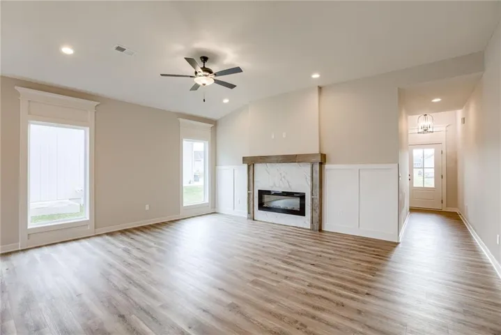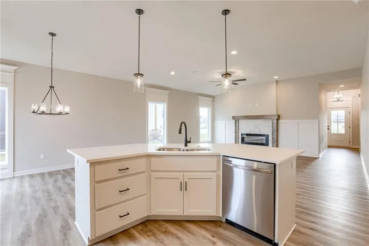 +"PublicRemarks": "Newly finished - the Freedom Ranch by Authentic Homes in the maintenance provided Boulder Springs subdivision. Zero entry - no stairs - 3 bedroom, 2 bathroom ranch floorplan. Open area living in the Kitchen/Great Room with fireplace and beautiful Luxury Vinyl Plank Flooring. The kitchen features enameled cabinets, soft close drawers, pantry, island, stainless appliances, gas stove, and quartz counter tops. Primary Suite is located on the back of the home for privacy - double vanities, quartz countertops, separate soaking tub, tiled shower, and walk-in closet. Two front bedrooms and bathroom are perfect for guests and/or office. Nice sized 2-car garage. HOA includes lawn maintenance, exterior painting, snow removal, sprinkler winterization, and access to swimming pool, play area & walking trails. Contact listing agent for details on possible lender paid rate buydown options!"