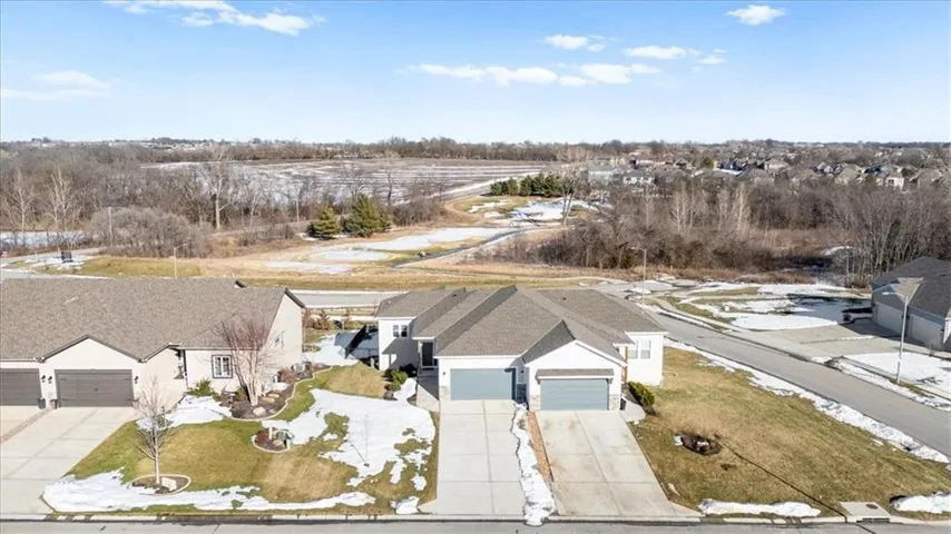 +"PublicRemarks": "Live in a GOLF COURSE COMMUNITY with a VIEW of the GOLF COURSE for well under $500K!! Care free living in this luxury twin villa located in The Highlands section of The Communities of Falcon Lakes. Home is situated on a walkout lot with a stunning full view overlooking the tee box and fairway on hole 17. Ten foot ceilings throughout the main floor! Open dining and kitchen combo perfect for entertaining guests. Separate living room with gas fireplace walks out to the large covered deck and golf course view! Master Suite on main level with large walk-in closet and shower with bench for convenience. Covered deck over patio. Finished lower level includes family room, two large bedrooms both with walk in closets, and full bath. HOA includes lawn maintenance, snow removal, and replacement of roof, gutters, paint as needed. Neighborhood pool, play area and basketball and pickleball courts included as well. Excellent schools, good highway access for easy commute to all parts of the city! 10 minutes to The Legends and 30 minutes to the airport or Lawrence. Desired golfing community, neighborhood restaurant. New blinds, radon mitigation installed, 2-10 Warranty transfers to new owner."