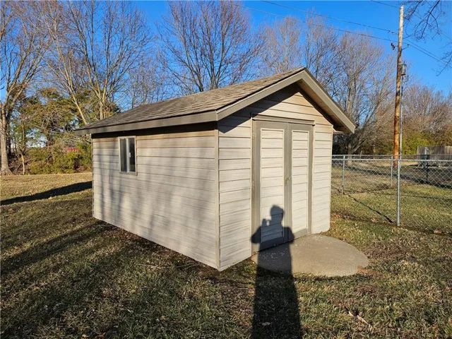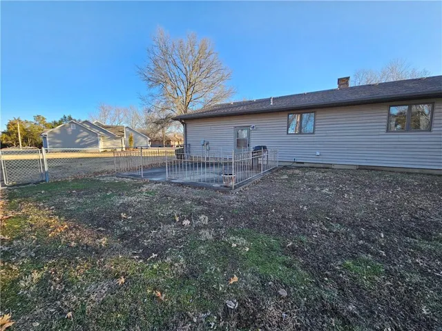The expansive backyard offers a blend of functionality and fun. Partially enclosed with durable galvanized chain-link fencing, it provides ample room for outdoor activities. A cozy patio, accented by an elegant wrought-iron fence, creates the perfect spot for relaxing or entertaining. Outside the fencing, the shed on a concrete slab adds practical storage. The property backs up to the former railway.