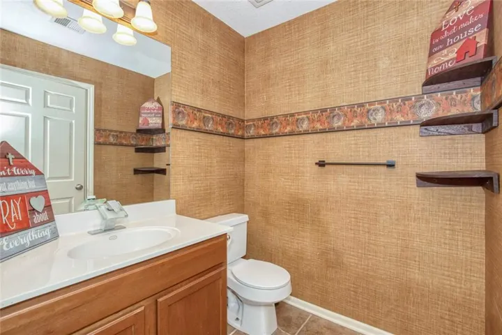 "LongDescription" => "Half bath with vanity and light tile patterned floors"