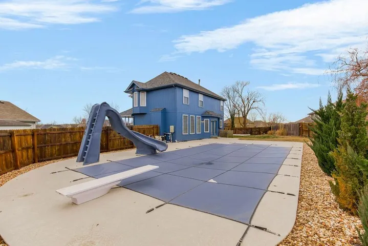 +"PublicRemarks": "Summer will be here before we know it and who wants an inground saltwater pool with a diving board and slide? Be prepared to enjoy your backyard oasis this year! If you are looking for space this two-story has almost 3000 square feet! The interior features new carpet and lpv flooring. Formal dining and a generous-sized kitchen. Great room with gas fireplace that overlooks the pool! Upstairs features 4 bedrooms and 2 full baths. The primary bedroom has his and hers walk-in closets with laundry conveniently located in the closet. Downstairs is finished and features a staying projector and screen in the rec-room , a full bath, and a bonus room that could be used as an office or an additional non-conforming bedroom! The seller had inspections done to save the buyers money and time!"