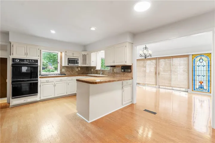 +"PublicRemarks": "Fabulous Blue Valley North opportunity! This spacious home offers endless potential with a generous open floor plan, perfect for those looking to add their personal touch. As soon as you pull up and take a look at this home's curb appeal, you'll know you have a gem on your hands. Recent updates include fresh interior paint, new upstairs carpet, Pella double-pane windows, gutters, driveway, and patio—plus a newer roof and HVAC for peace of mind. Natural light and tons of character throughout! The main level boasts a formal living and dining area, along with a large family room featuring a stunning stacked stone fireplace and an office nook. The open kitchen, complete with a breakfast area and beautiful stained-glass windows, leads to a charming patio, ideal for entertaining. Upstairs, you'll find four spacious bedrooms, including a luxurious primary suite with a whirlpool tub and a generous walk-in closet. The fully finished walkout basement provides even more living space, featuring an additional bedroom, full bath, wet bar, and another cozy fireplace. Located in the highly sought-after Blue Valley School District, this home offers enviable highway access and is just minutes from Town Center’s premier shopping and dining. Don’t miss out on this incredible opportunity in a prime Leawood location!"