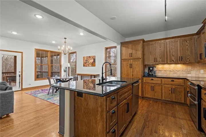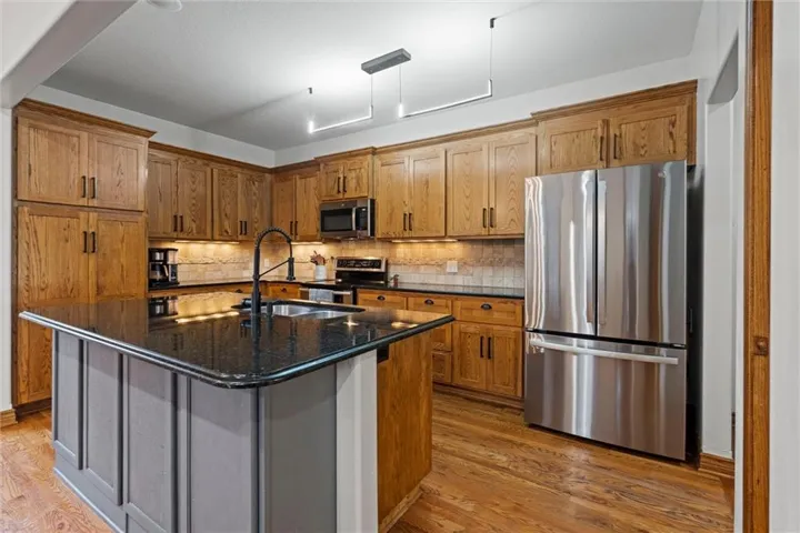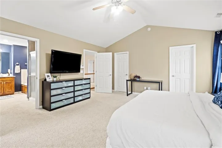 +"PublicRemarks": "This beautifully maintained home offers a perfect mix of charm, space, and functionality. From the soaring ceilings and detailed woodwork in the dining room to the see-through fireplace connecting the formal living room and hearth room, the layout is inviting and thoughtfully designed. The open kitchen is ideal for entertaining, and upstairs, the primary suite features two walk-in closets and a spacious en suite bathroom. Three additional bedrooms upstairs each come with their own private bathroom and walk-in closet. The walkout basement provides even more living space with two large living areas, a fifth bedroom, a full bath, and ample storage. Step outside to the covered, screened-in deck overlooking a large backyard that backs up to peaceful wooded acreage, offering privacy and relaxation. Come see it for yourself—you won’t want to miss this one!"