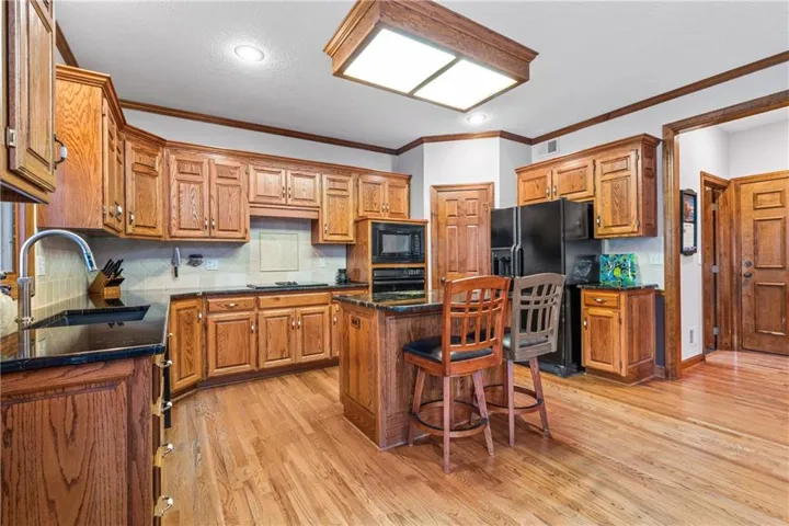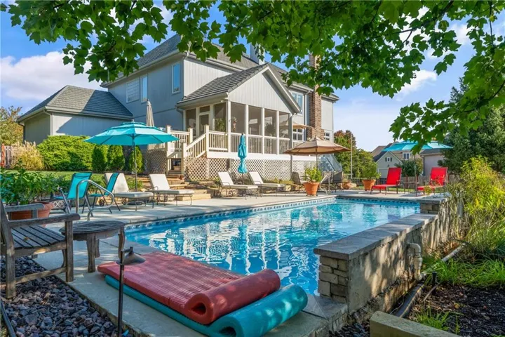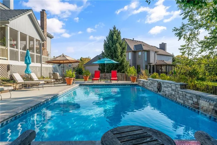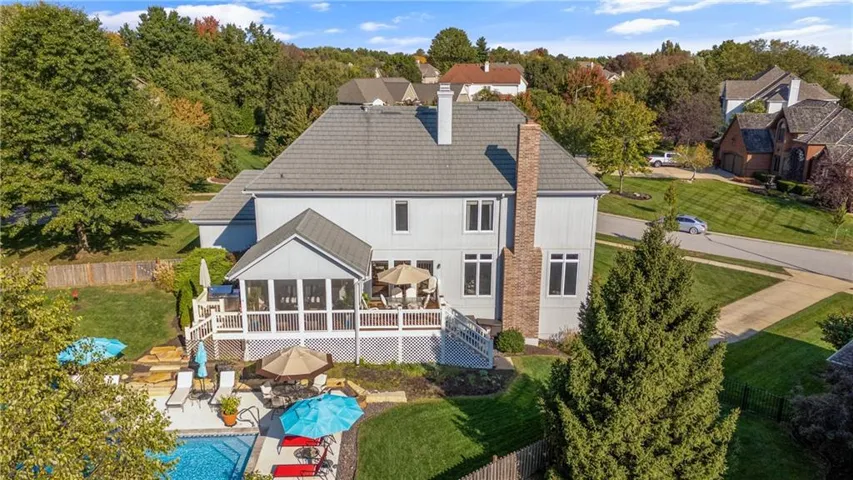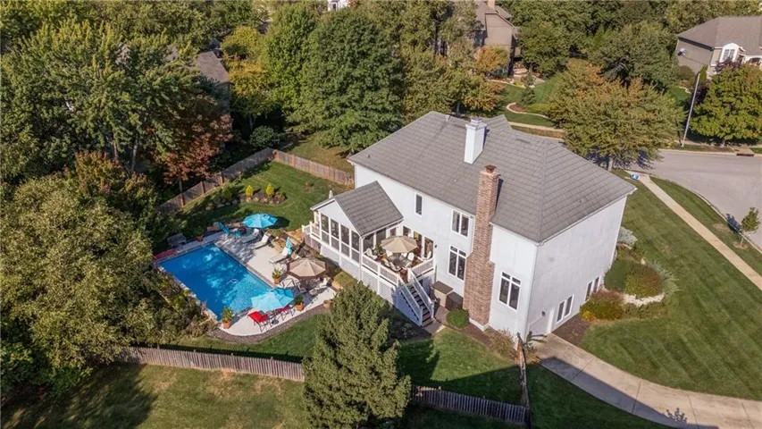 This is the opportunity you have been waiting for! This property features a new salt water HEATED pool and a standard 3 car garage AND an additional 3 garage spaces /storage/shop/work space/boat storage right here in beautiful Leawood. There is enough room for everyone in this 4 bedroom home that offers a home office, formal dining, living room, hearth room, gourmet kitchen and so much more. Upstairs, the primary suite offers bonus space that could be used as another office, nursery, or reading nook! The primary closet is HUGE, and don't forget the built in cedar closet upstairs too! Outside, you can relax in the tranquility of your beautifully landscaped oasis complete with salt water, heated pool. This is a brand new pool with all the updated codes and restrictions. In the finished, walkout basement you can hang out around the wet bar or enjoy a movie in the rec room. Finally, use all the extra space of the 51' long, 15' wide additional garage space (complete with driveway) for your car collection, hobby toys, craft room, boats, equipment, or whatever else you can dream up! This property also has an incredibly updated roof, the Gerard stone coated metal roof! Wow, can you believe all these features!\r\n