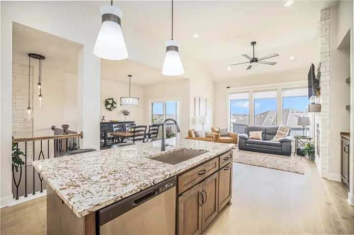 +"PublicRemarks": "Like new Reverse 1.5 Story villa in sought-after Creekmoor. It has a beautiful open layout with upgrades throughout. Stunning kitchen with a large center island, walk-in pantry, and an upgraded gas cooktop. Inviting great room with a fireplace and large windows overlooking the backyard. Main floor primary suite and second bedroom or office. Finished walkout lower level with a family room and two additional bedrooms. Expanded partially covered deck with stairs to custom paver patio for entertaining ($25K upgrade). Amazing neighborhood with loads of amenities, including lawn maintenance and snow removal. Additional amenities include a large clubhouse, a restaurant open to the public with daily lunch and dinner specials, an open-air patio, 24 hr fitness center with men's and women's locker rooms, three pools, basketball, tennis, and pickleball courts, pro golf shop, a championship 18-hole golf course with discounted rates, plus, a 108-acre no-wake lake for swimming, paddle boarding, kayaking, and fishing. Amazing deal compared to new, with many upgrades paid out-of-pocket including upgraded flooring, lighting, custom blinds, landscaping, invisible fence, extended furnace warranty, and more. Great location, just a five minute walk to the pool and clubhouse! Check out the walk-through 3D virtual tour."