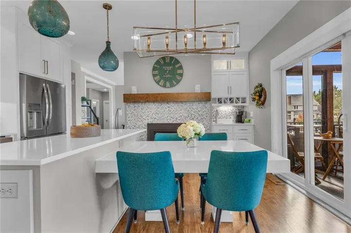 +"PublicRemarks": "Spacious 4-bedroom, 3 full bath home tucked into a quiet cul-de-sac! Enjoy fresh exterior and interior paint, newer hardwood floors throughout, vaulted ceilings, and a finished lower level perfect for entertaining—complete with a 4th bedroom. Step outside to a walkout backyard featuring an incredible outdoor living space. Situated on a generous corner lot with easy access to a nearby walking trail. Just minutes from Mahaffie Elementary and located near Olathe’s growing amenities. Come see it for yourself!"