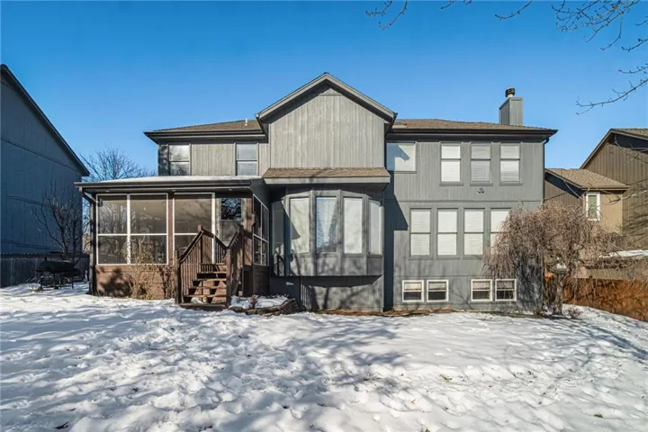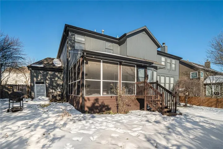 +"PublicRemarks": "Conveniently located in Overland Park’s Foxfield subdivision, tucked away on a cul-de-sac, this spacious 4 bed, 4.1 bath, 2 story house is close to great food and shopping with easy freeway access. The foyer opens up to a formal dining and formal living room or office space and leads into the kitchen, dining nook, and great room with a fireplace. Winter entertaining is easy with a second full kitchen, wine cellar, and media space in the lower level while summer entertaining on the screened in deck allows you to enjoy pest-free BBQ’s. Some of the other great features of this house are a second en suit bedroom, a fenced in back yard, 3 car garage, newer HVAC and water softener, and a recently painted exterior. Push the bookcase open on the media center to access an additional secret storage space. Don’t let this one get away!"