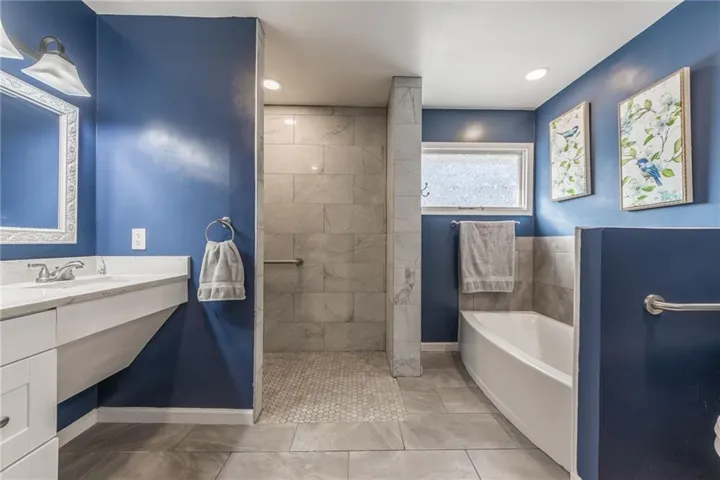 +"PublicRemarks": "Welcome to this beautifully updated, ADA-accessible ranch home with a two-car garage! This move-in-ready home features a spacious open floor plan with wide doorways, step-free entrances, and a thoughtfully designed layout to ensure accessibility for all. The inviting living room flows seamlessly into a large dining area and a fully renovated kitchen, complete with stainless steel appliances, custom cabinetry, and ample counter space. Additional updates include new/refinished floors, fresh paint, and large windows that let in lots of natural light. The home offers two spacious bedrooms. Escape to the main bedroom which is large enough for a king-sized bed and features a walk-in closet and main-floor laundry. The bathroom is complete with a double sink, zero-entry shower, and bathtub, fully equipped with ADA-compliant features, such as grab bars and a roll-under sink. The unfinished basement boasts with potential for an additional bathroom, bedroom, and finished square feet. Dream of warmer days under the covered back patio and fenced-in yard ready for your furry friends. Located in a desirable neighborhood with convenient access to shopping, dining, and major highways. Don’t miss out—schedule your private tour today!"