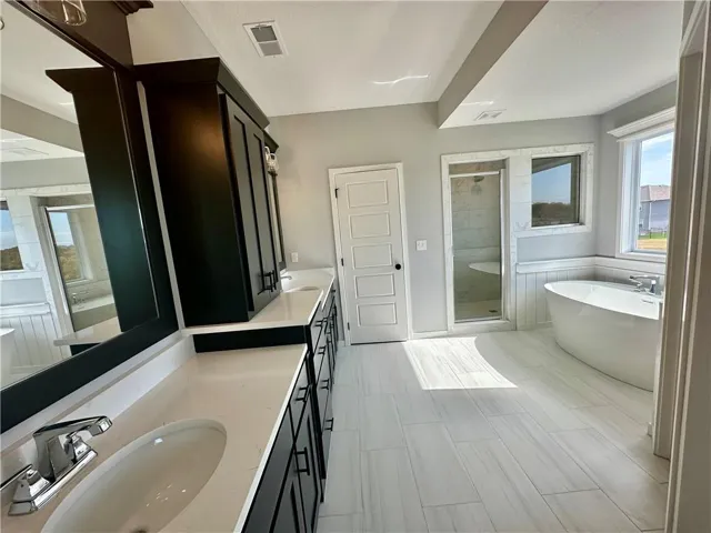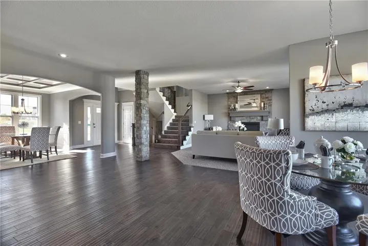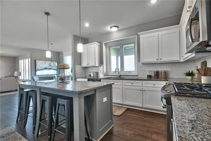 MOVE ON INTO this stunning Niko new construction home, built by Prieb Homes. The location offers easy access to highways and shopping, making it a convenient place to call home. The Niko plan is a spacious 5 bedroom, 4 bath home, perfect for families or those who enjoy having plenty of space. As you enter the home, you'll be greeted by a spectacular two-story entry that creates a grand impression. The open floorplan offers ample space to entertain and make memories with loved ones. The great room features a beautiful stack stone fireplace that adds a cozy touch to the space. The kitchen is sure to impress with its CL cabinet package, complete with soft close drawers and doors, a hood, apron sink, and built-in microwave. The large center island is perfect for meal prep and hosting guests, while the painted cabinets and walk-in pantry add both beauty and practicality. The breakfast room overlooks a covered patio, creating a perfect space for outdoor relaxation and enjoyment. The main floor bedroom is perfect for guests, a playroom, or a home office, providing flexibility and versatility to the home. Upstairs, the master suite is a true retreat, featuring a spa-like bath with a freestanding tub and a large walk-in closet. The laundry room is conveniently located next to the master suite, making laundry day a breeze. The home features beautiful stone accents and today's colors, creating a modern and stylish feel. The photos are of a previously completed sold Niko plan, some features and selections may not be included in this particular home. \r\n