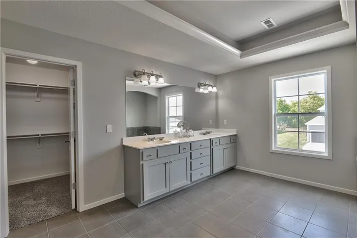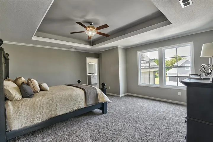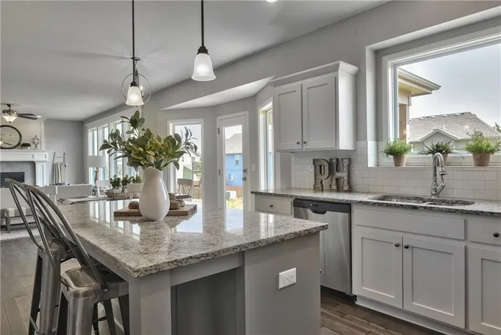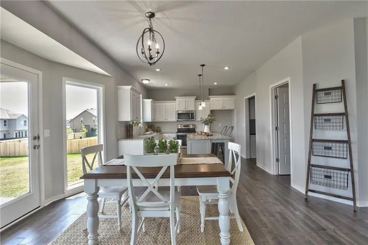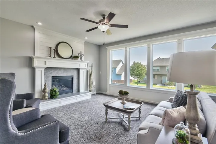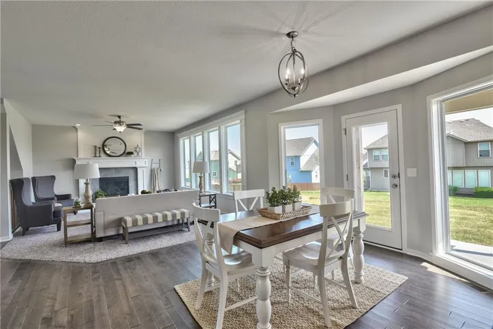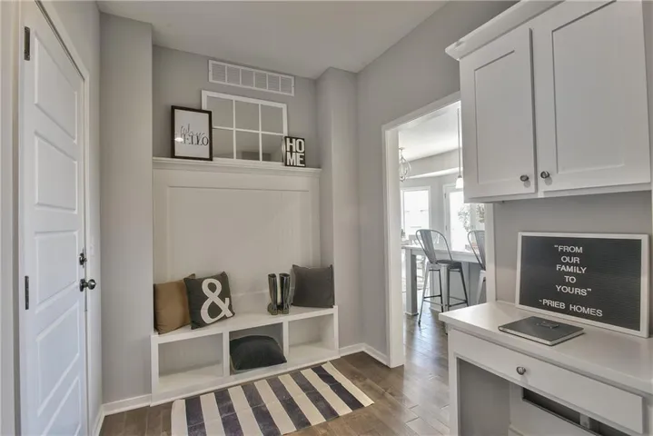 +"PublicRemarks": "Welcome to the Paxton III by Prieb Homes. This 2 story plan begins with a wonderful front porch leading you into this open floorplan. Nice entry with U-shaped staircase is open to the formal dining room with trayed ceiling. Great room with gas fireplace enjoys the natural light streaming through the windows. The center island kitchen is sure to please, featuring granite countertops, apron sink, custom cabinets with soft close drawers & doors, upgraded cabinet hardware, cabinet hood & built in microwave, stainless appliances and a large walk in pantry. Beautiful hardwood floors run throughout the entry, kitchen, breakfast room and mud room. Walk out of the breakfast room onto the covered deck to enjoy the outdoors. Large first floor guest room with closet can be used as an office, playroom, sewing/craft room, etc. Convenient 3/4 bath is adjacent to the guest room and mud room with boot bench and entry closet. Upstairs you will find three more bedrooms, one with its own private bath. The other two bedrooms share a Jack & Jill bathroom with a large vanity & double sinks. All bedrooms have vaulted ceilings. The owner's suite is a spacious room with double doors & vaulted ceiling. The lovely bath is a quiet retreat with a tiled walk-in shower, separate tub, two separate vanities, linen closet and tile floors. Attached is a large walk-in closet leading into the laundry room which is also accessible from the hallway with built-in bookshelves. Incredible unfinished basement with tons of storage and 3/4 bath stub. Three car garage and sprinkler system. Prairie Farms is adjacent to the newly renovated Lake Olathe offering tons of outdoor activities. Large community pool, cabana, play area and walking trails. Conveniently located close to schools, shopping, grocery stores, restaurants and highways."